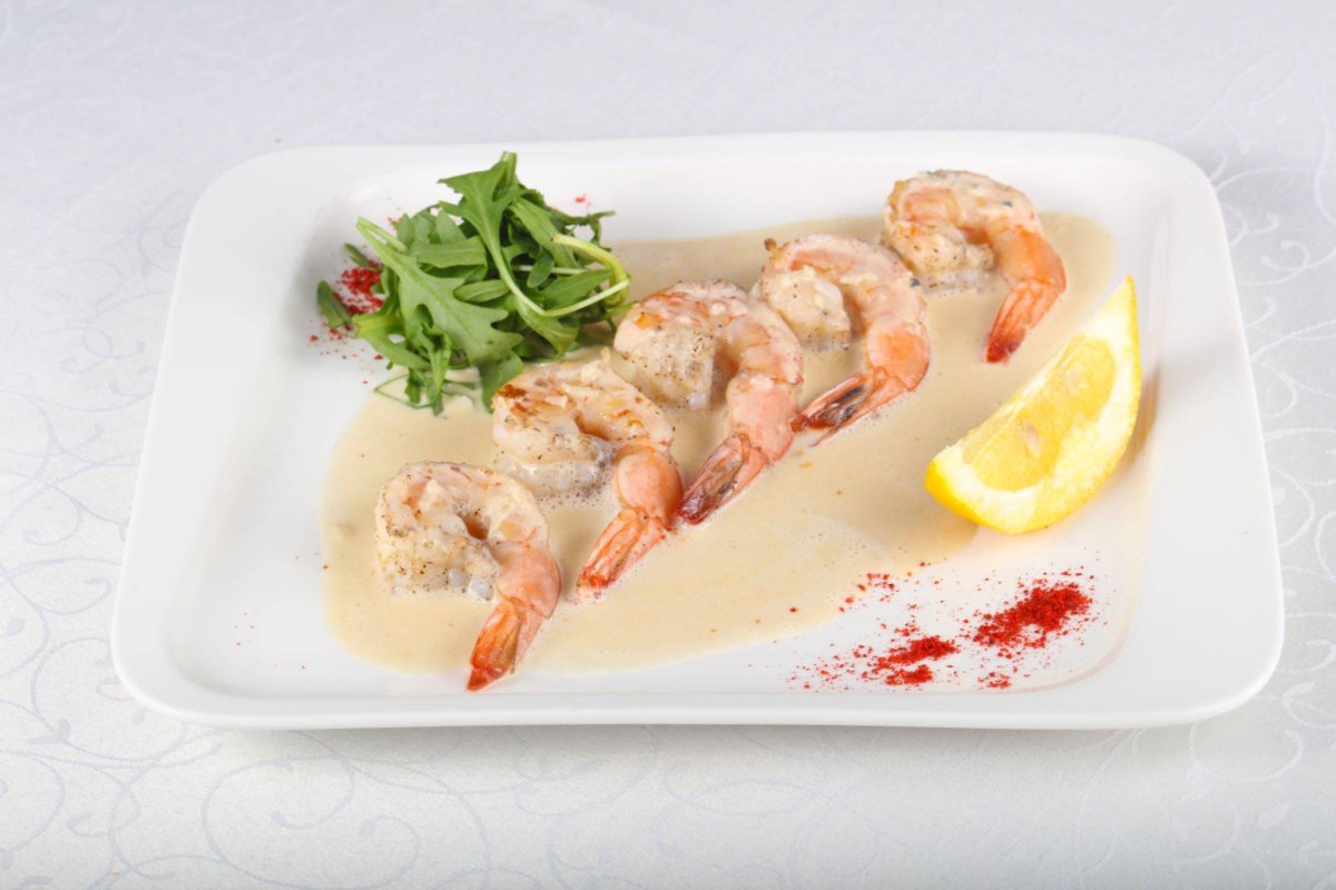 Тигровые креветки в сливочном соусе
