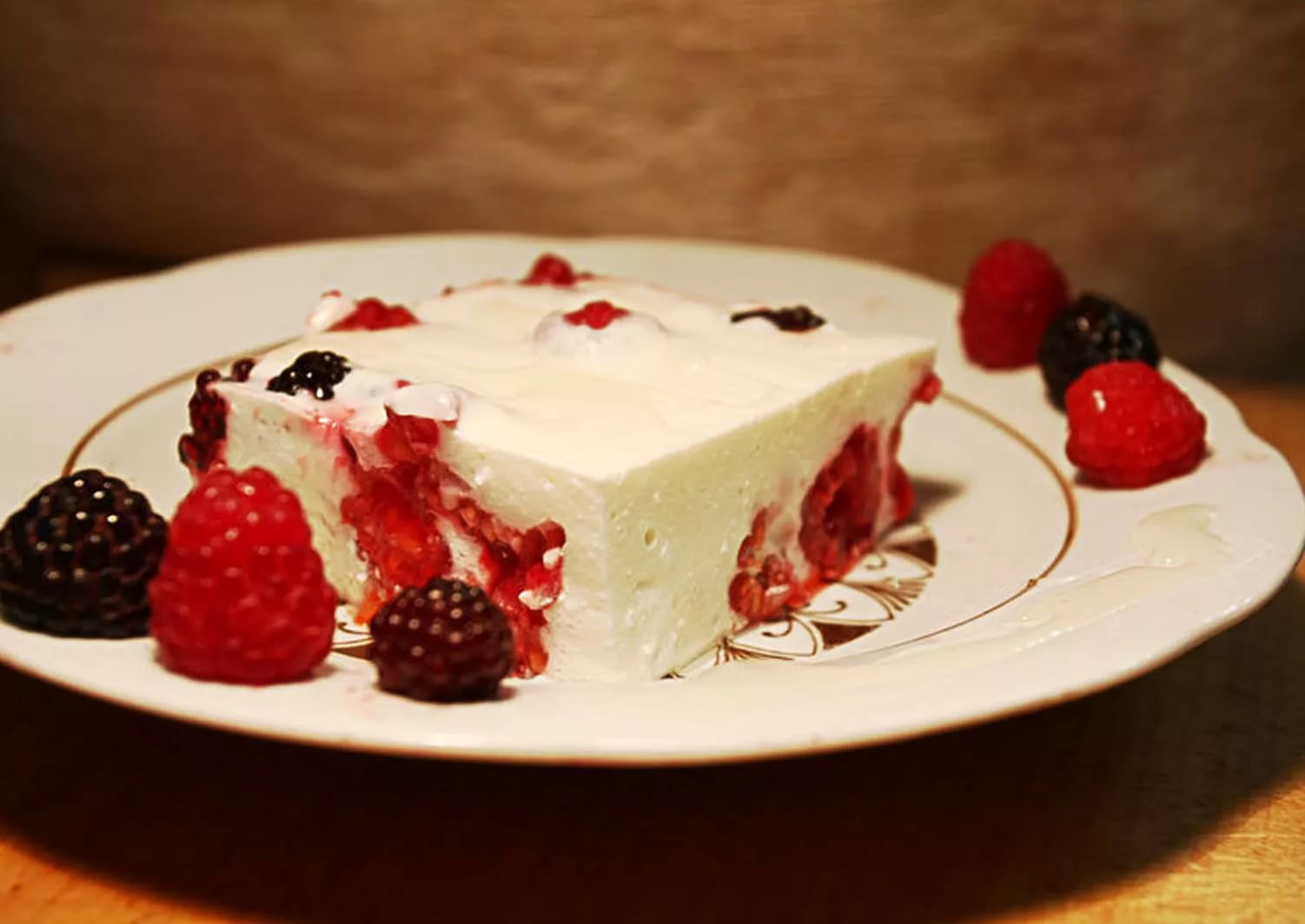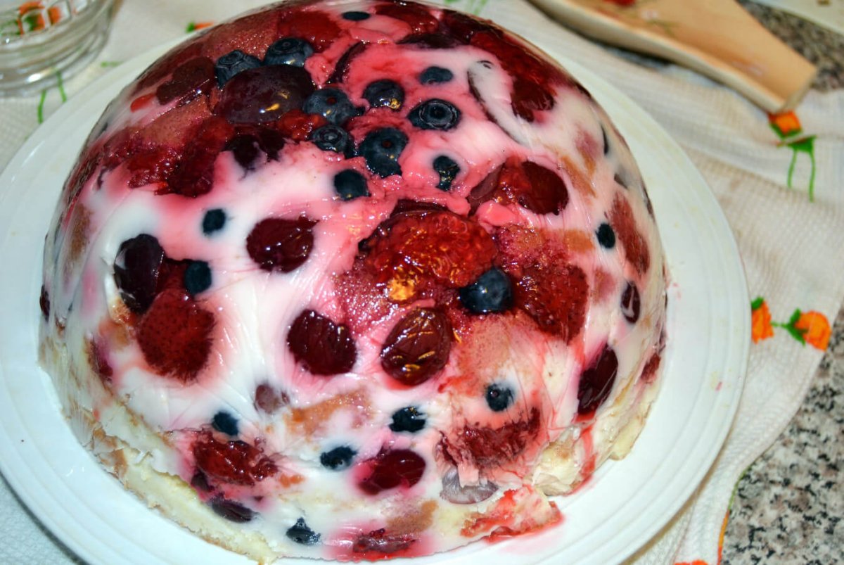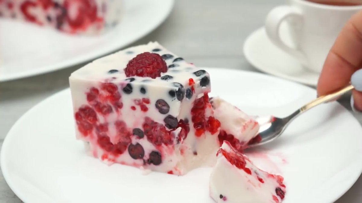 Творожный десерт с желатином и ягодами