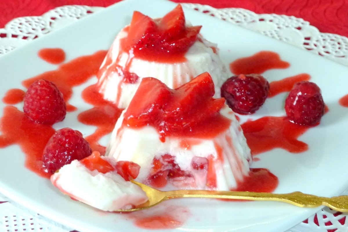Десерт бланманже с фруктами