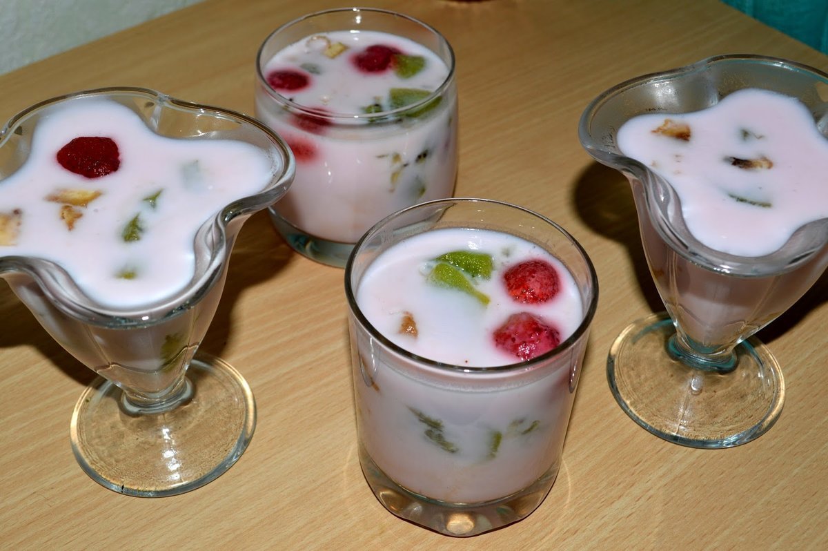 Сметанный десерт с желатином и фруктами
