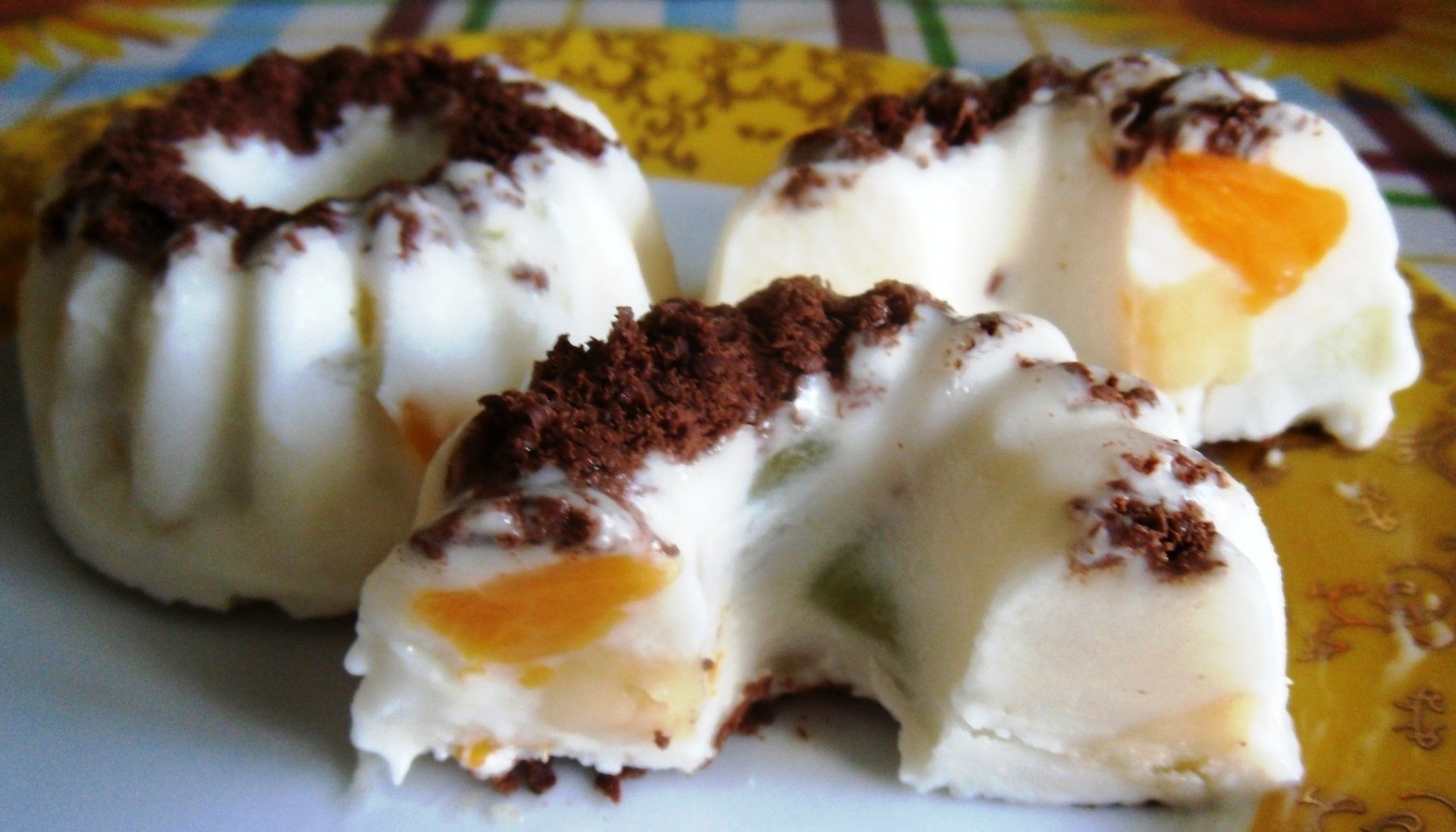 Творог с желатином и фруктами