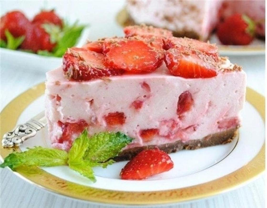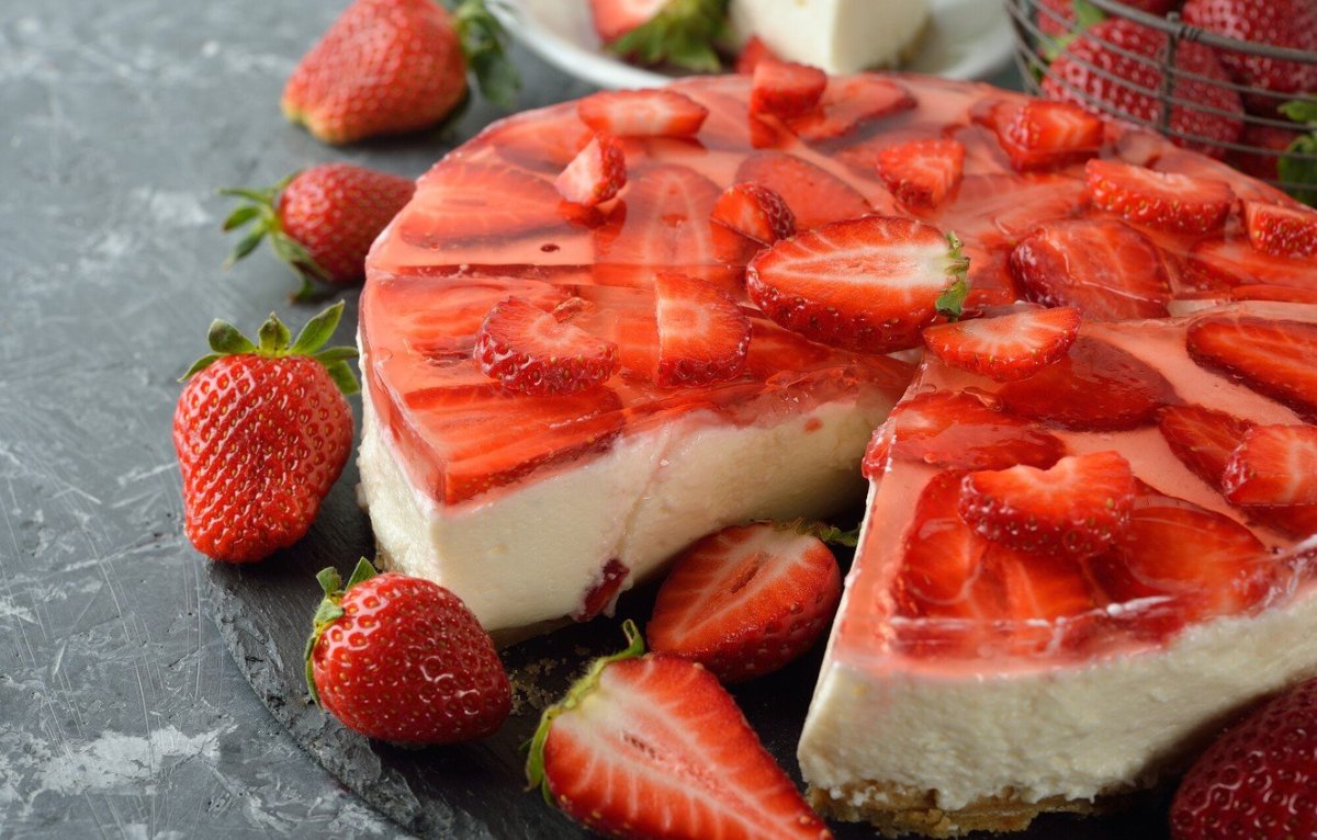 Чизкейк с клубникой и желе без выпечки