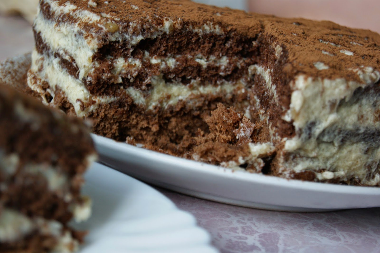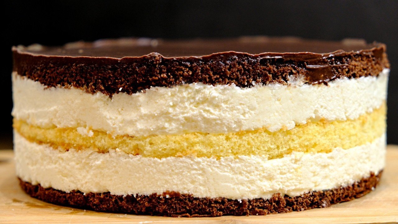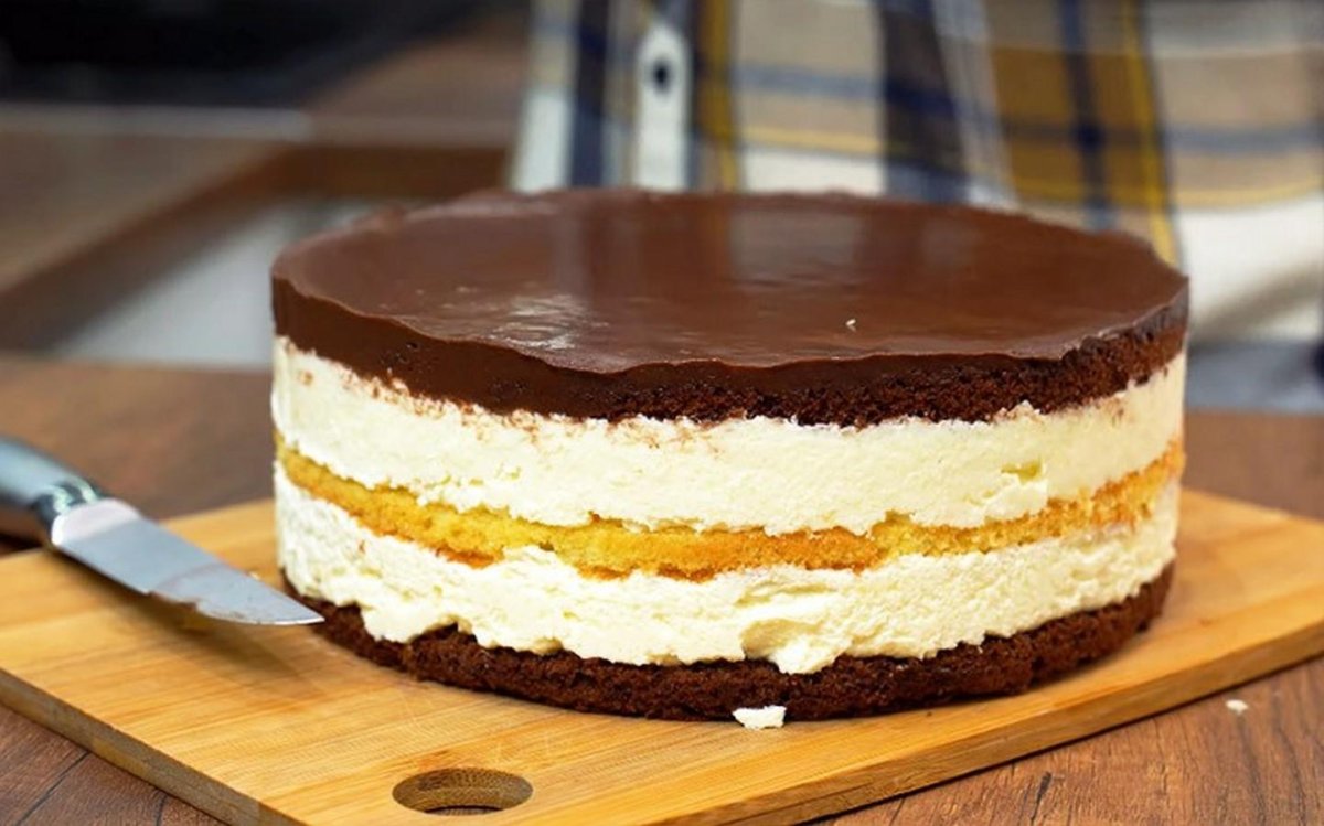 Торт с белым бисквитом и шоколадным кремом