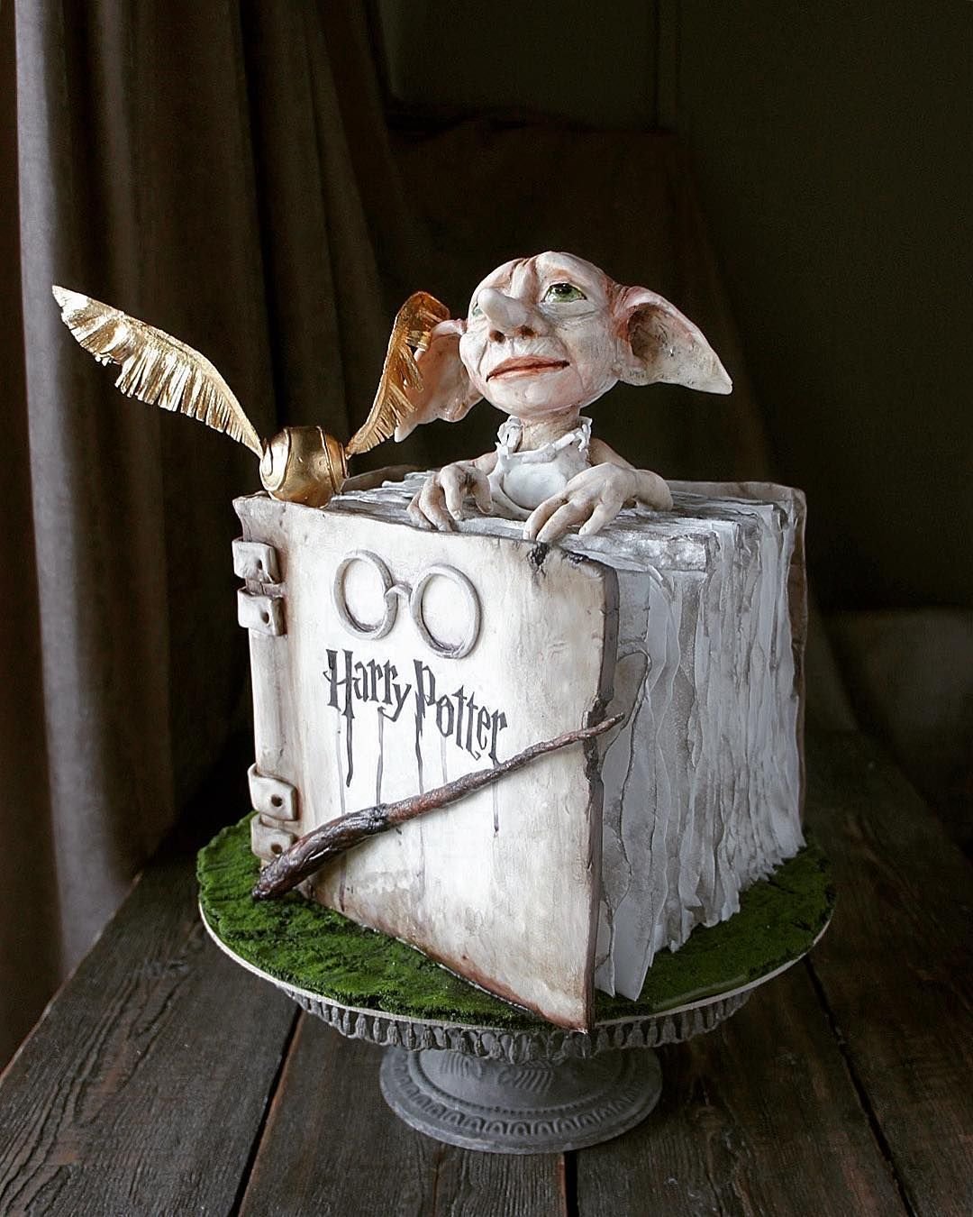 Торт по Гарри Поттеру со Снитчем и голубикой