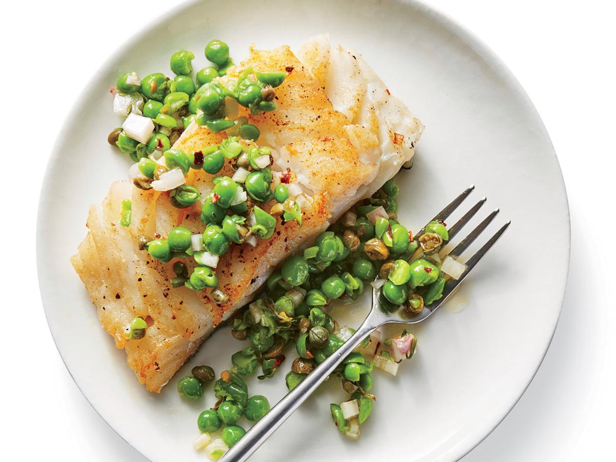 Треска с зеленым горошком
