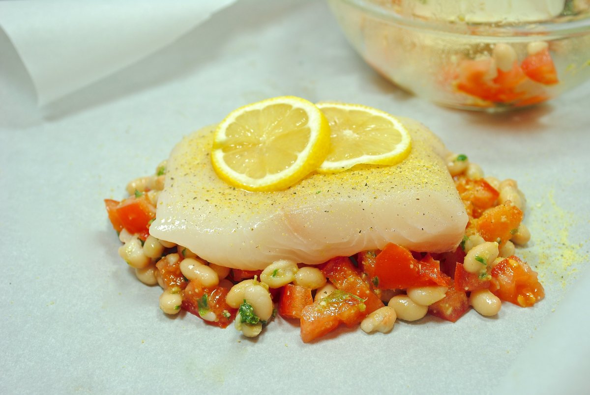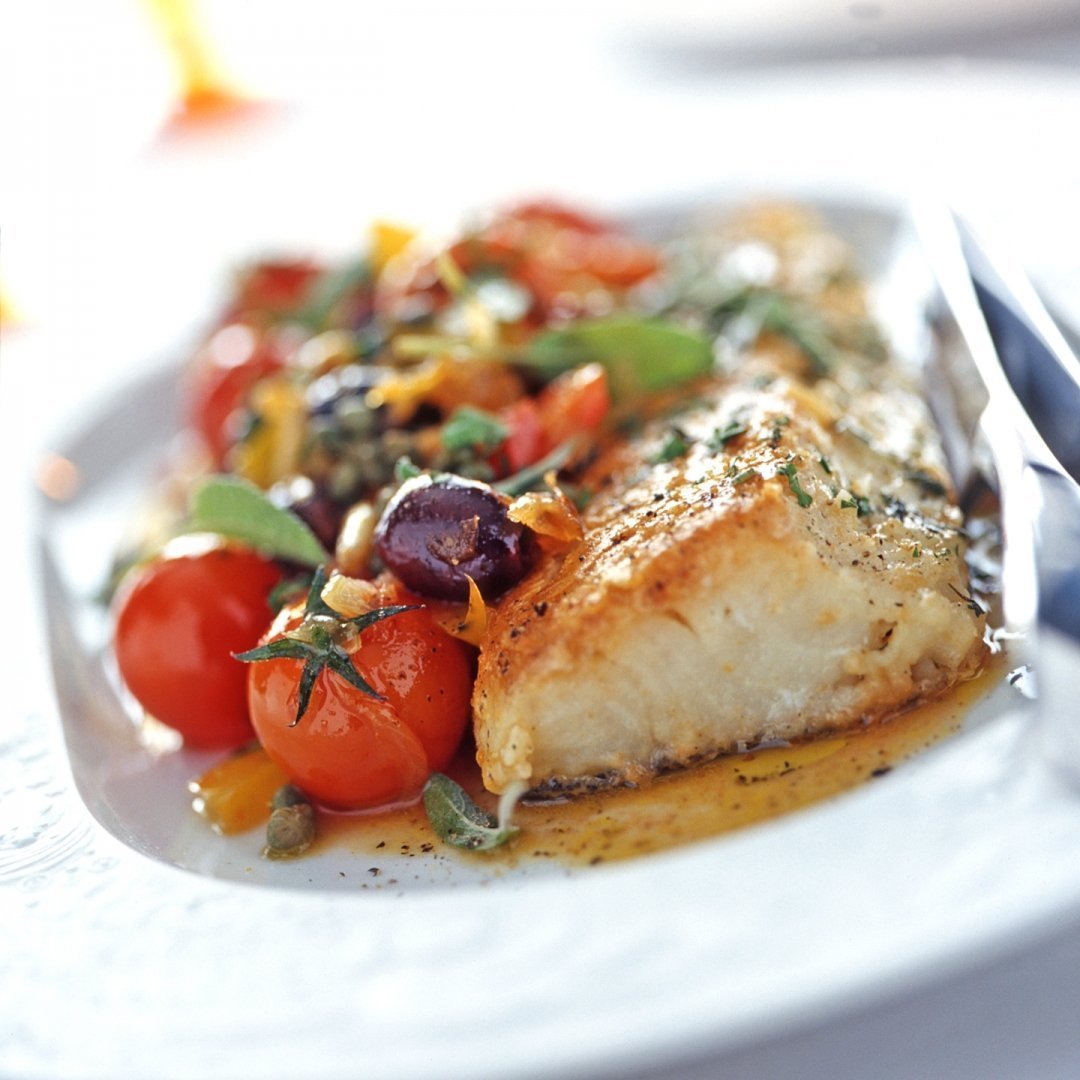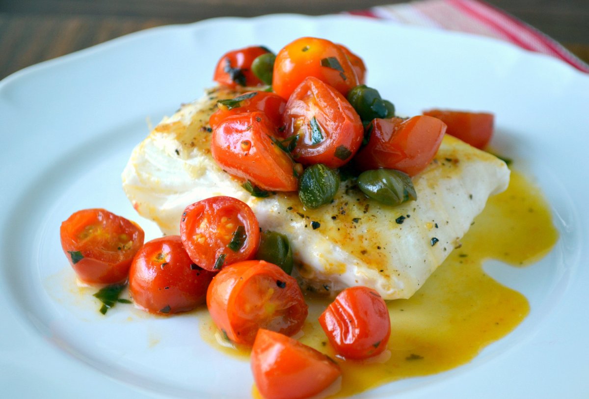 Треска с помидорами черри