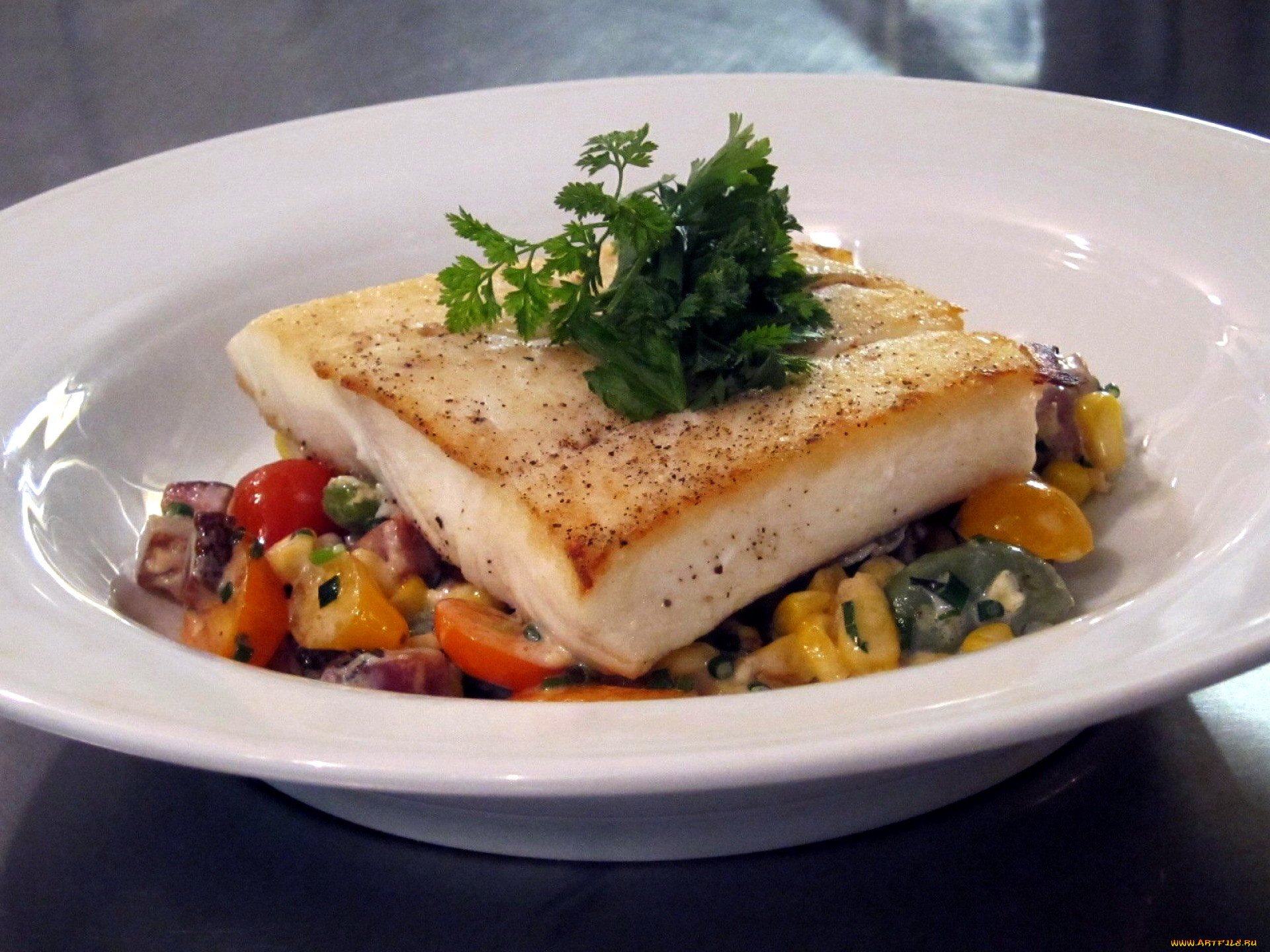 Палтус со свежей сальсой