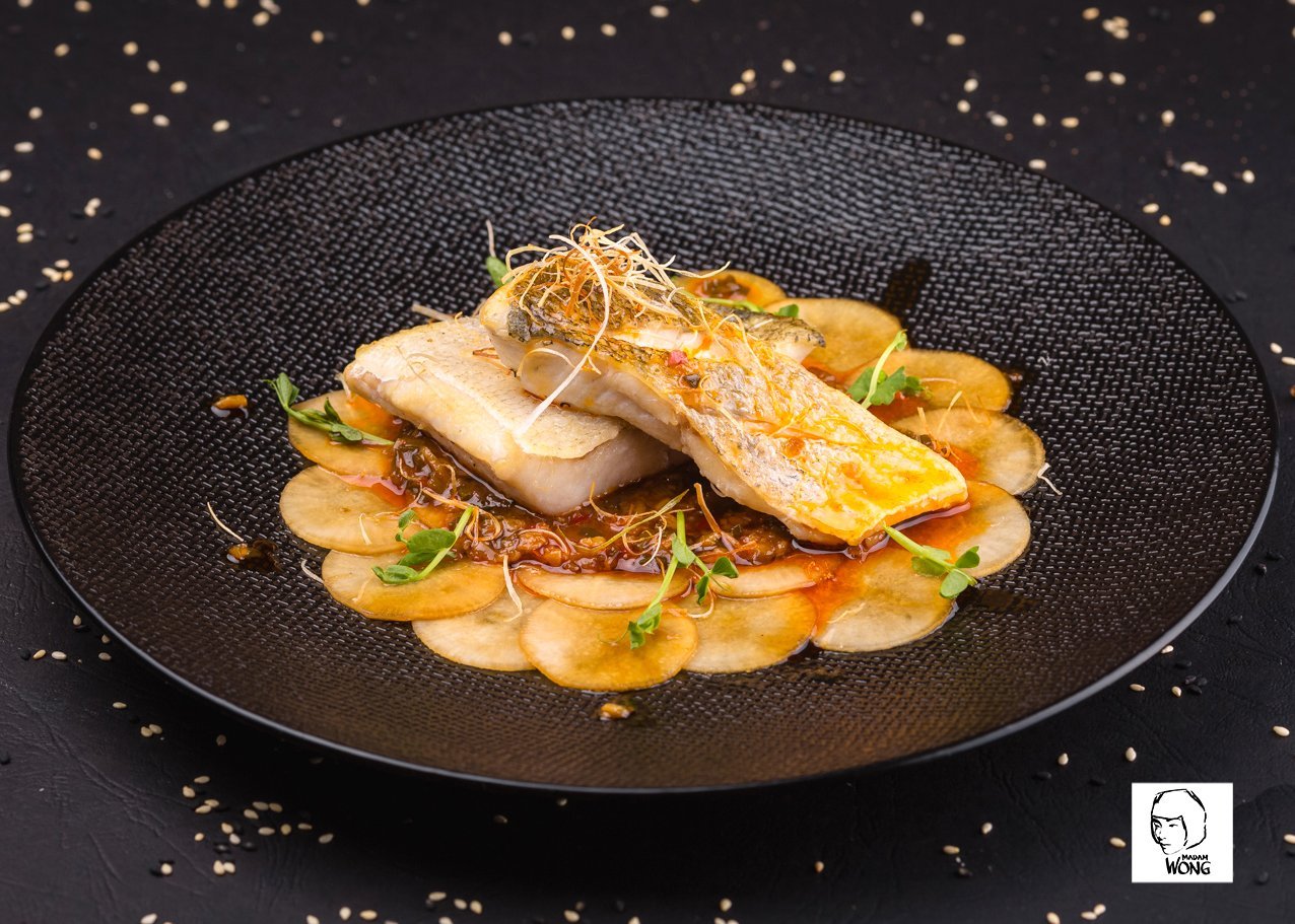 Филе сибаса со шпинатом