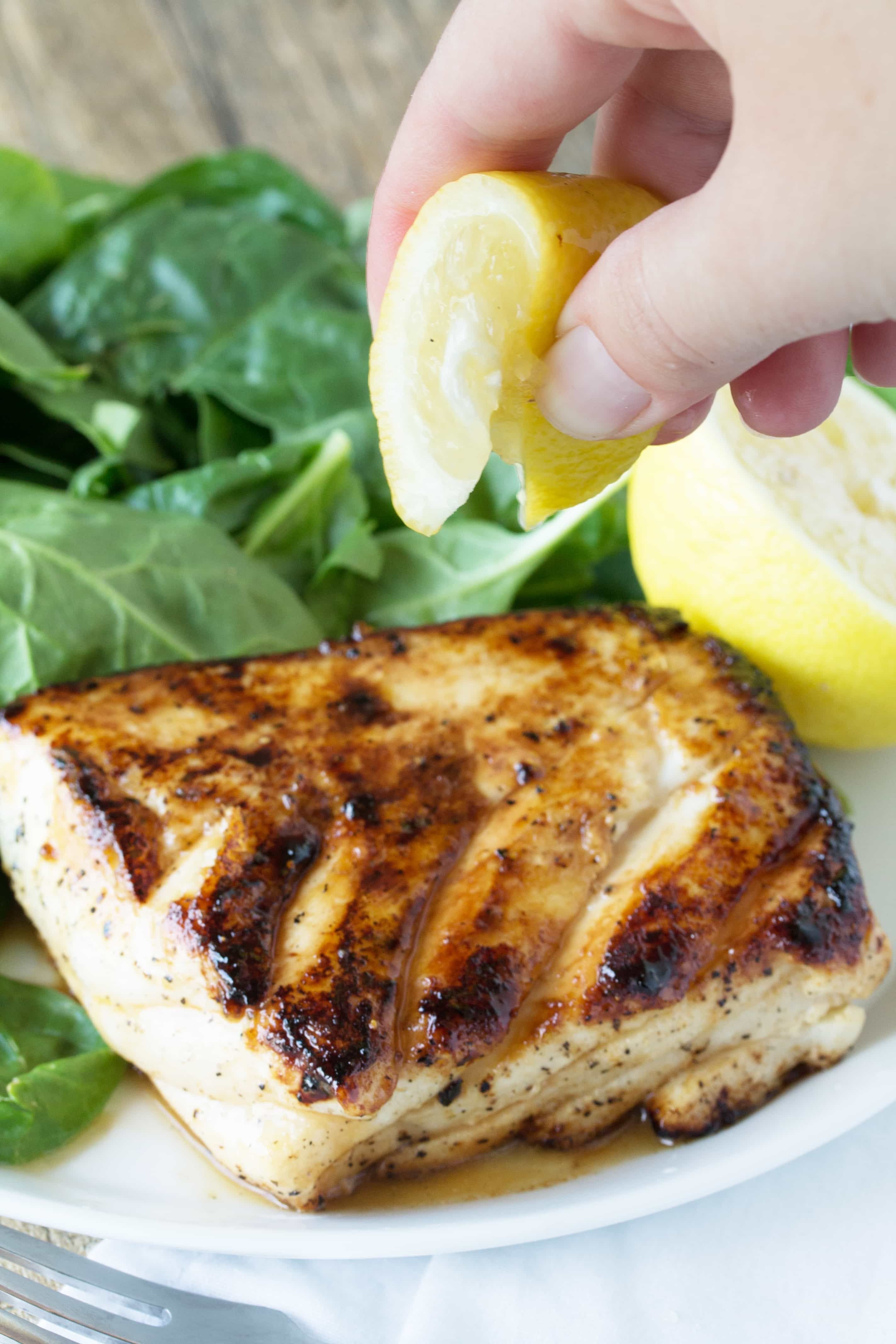Стейк палтуса на гриле