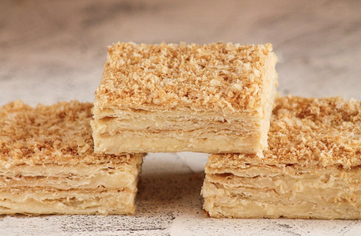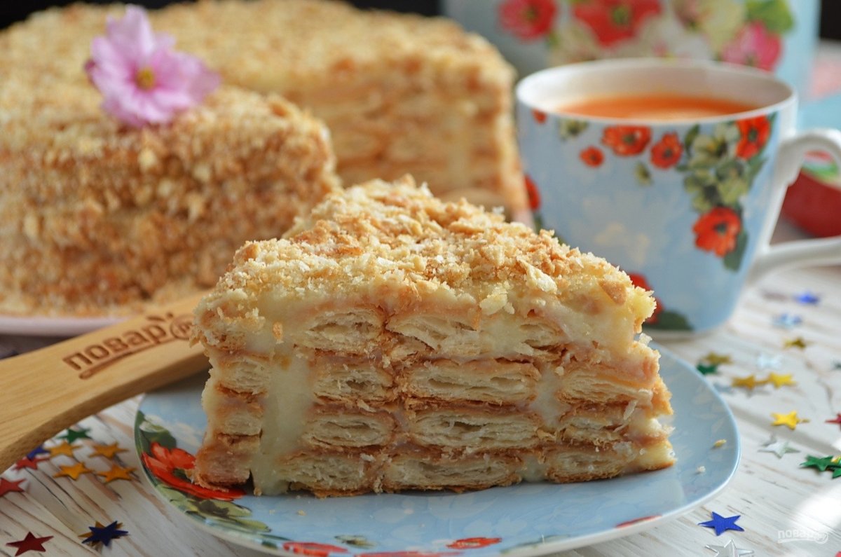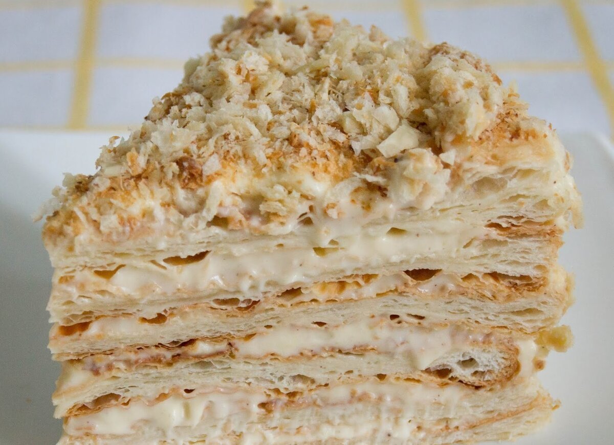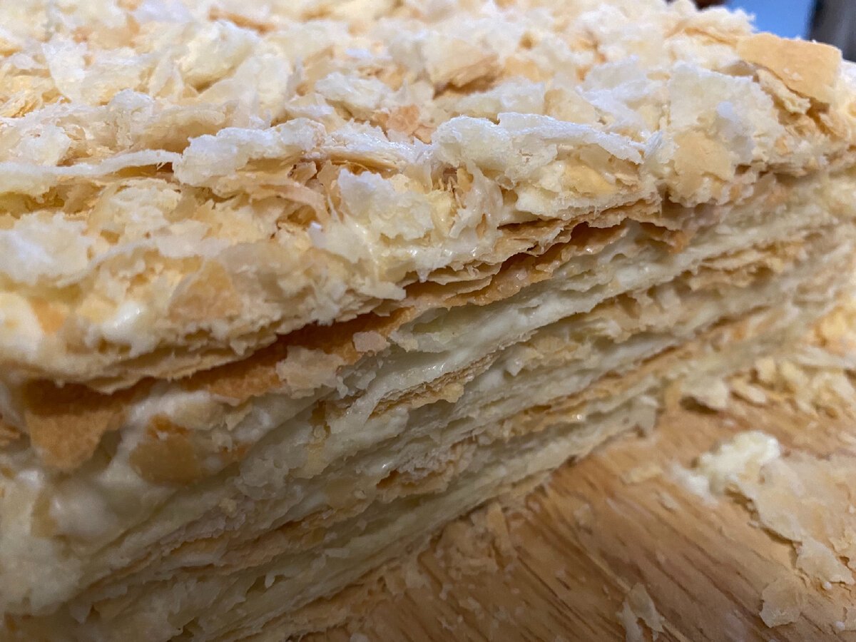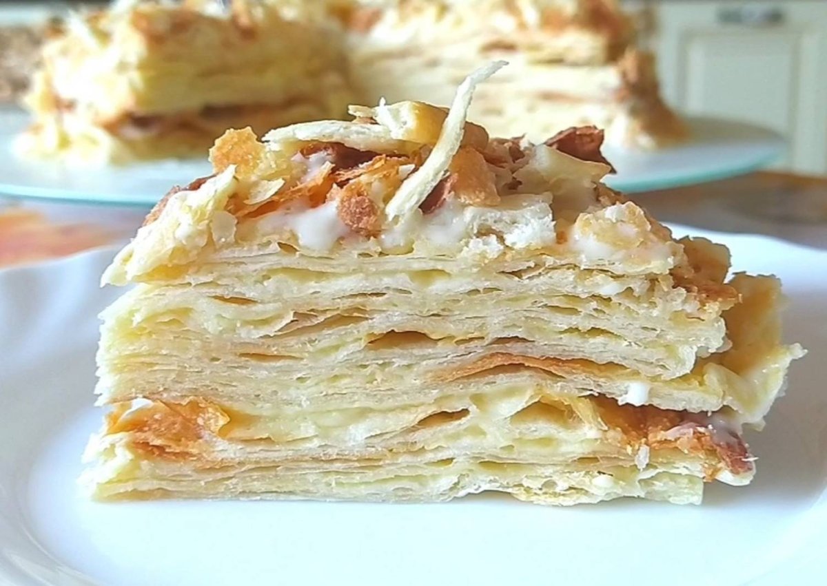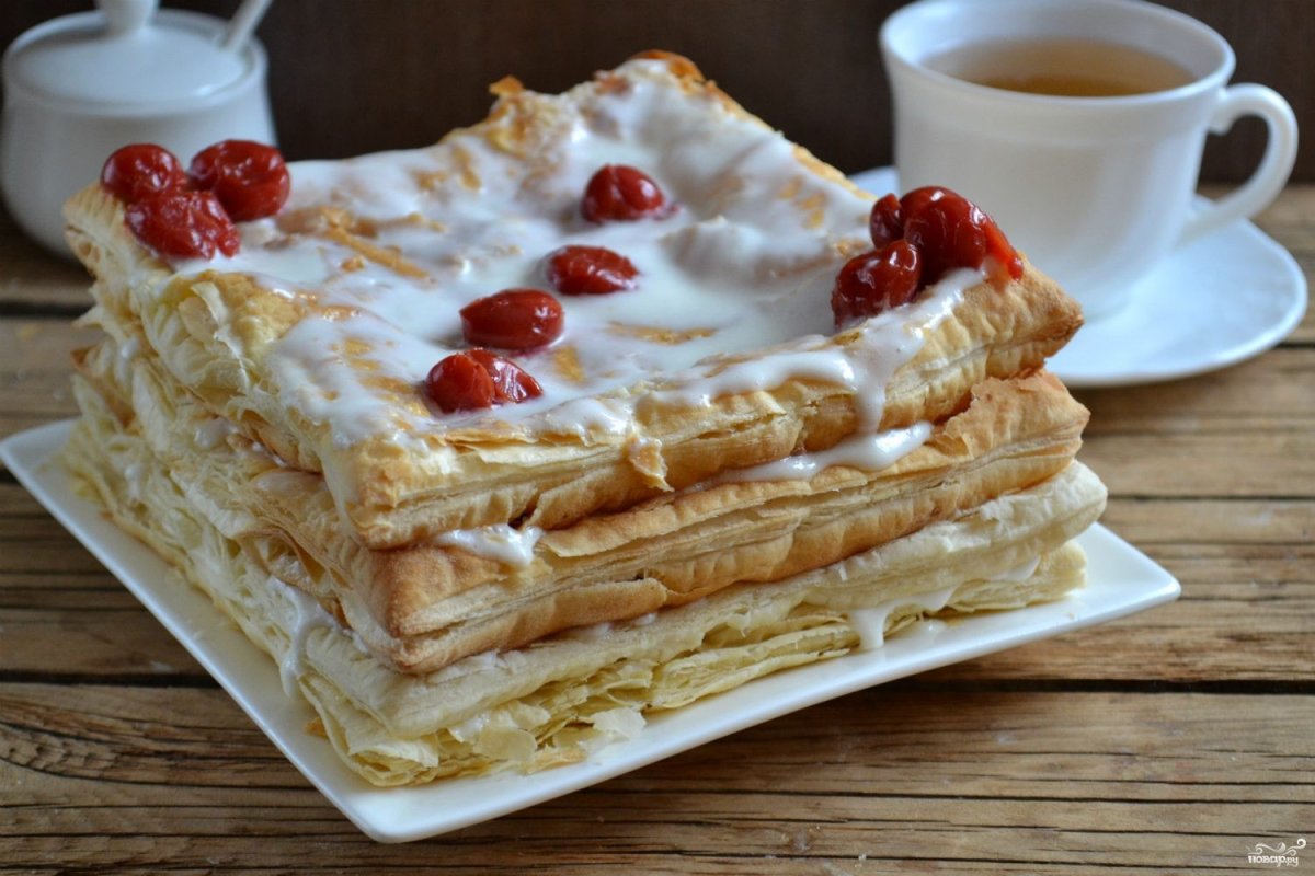 Ленивый Наполеон из слоеного теста с заварным кремом