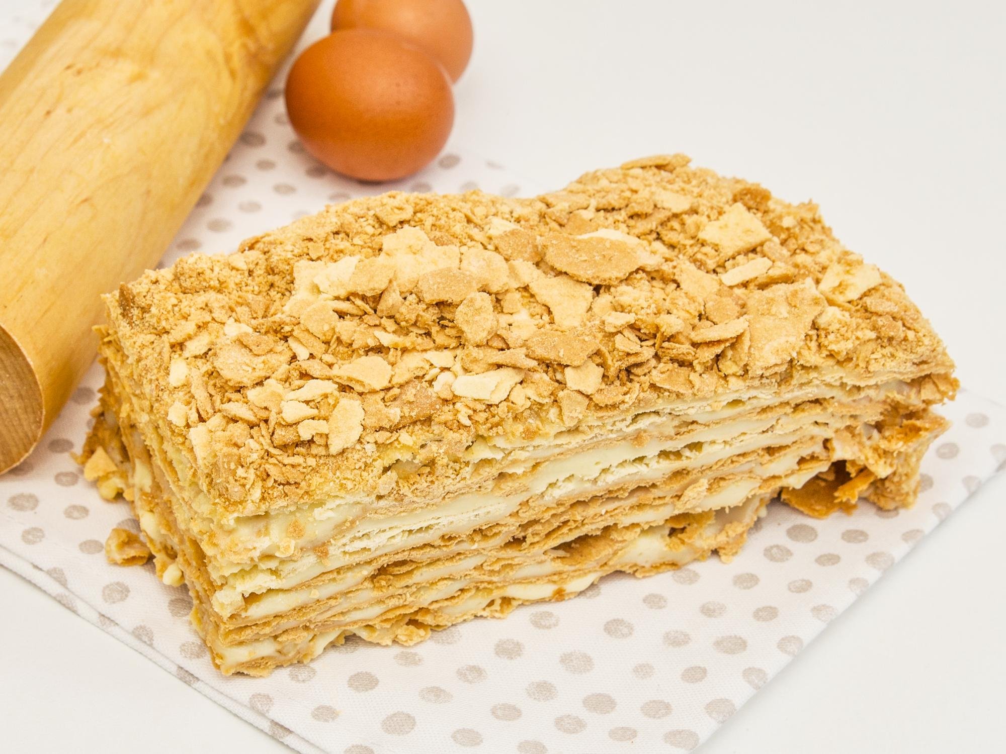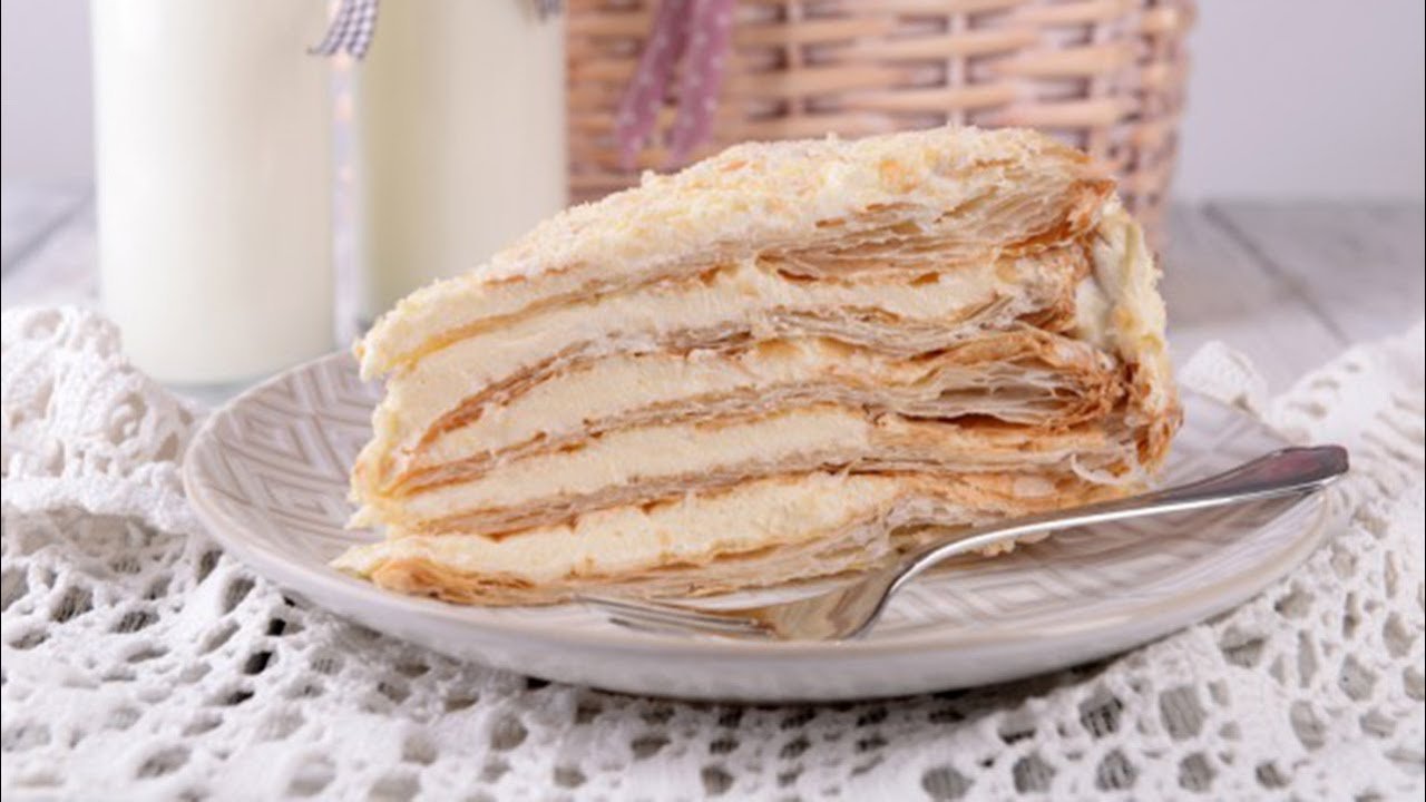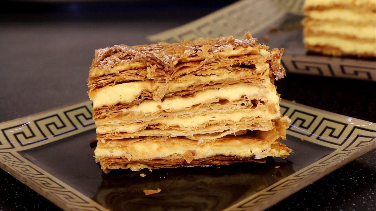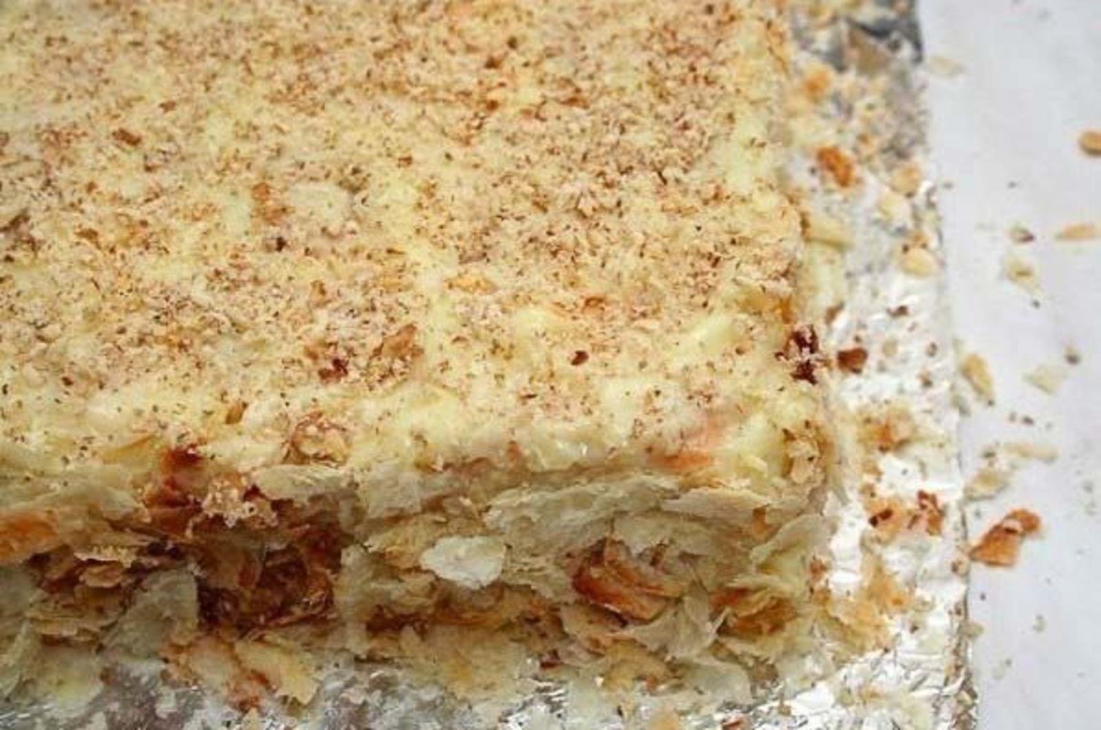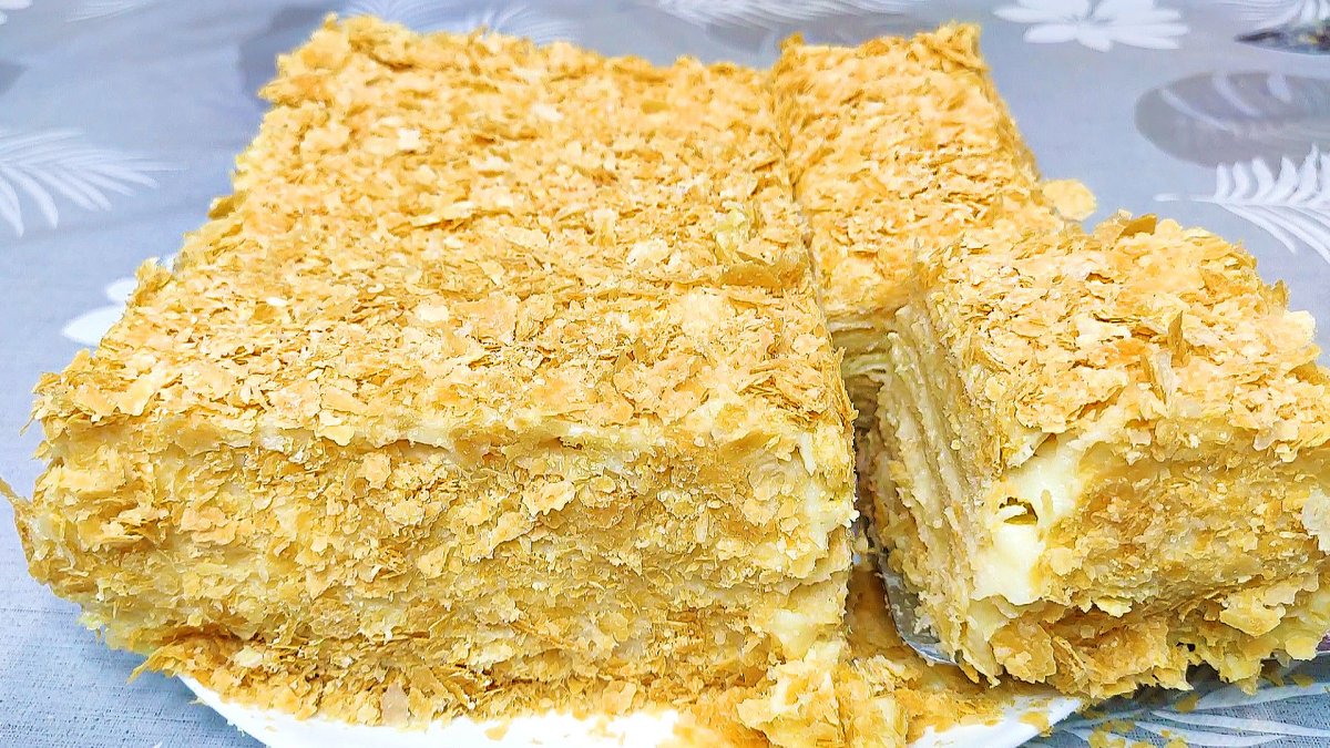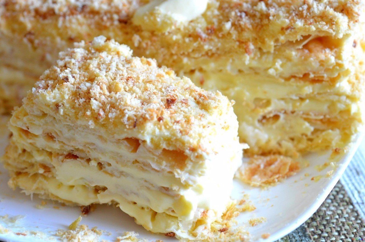 Ленивый Наполеон из слоеного теста с заварным кремом