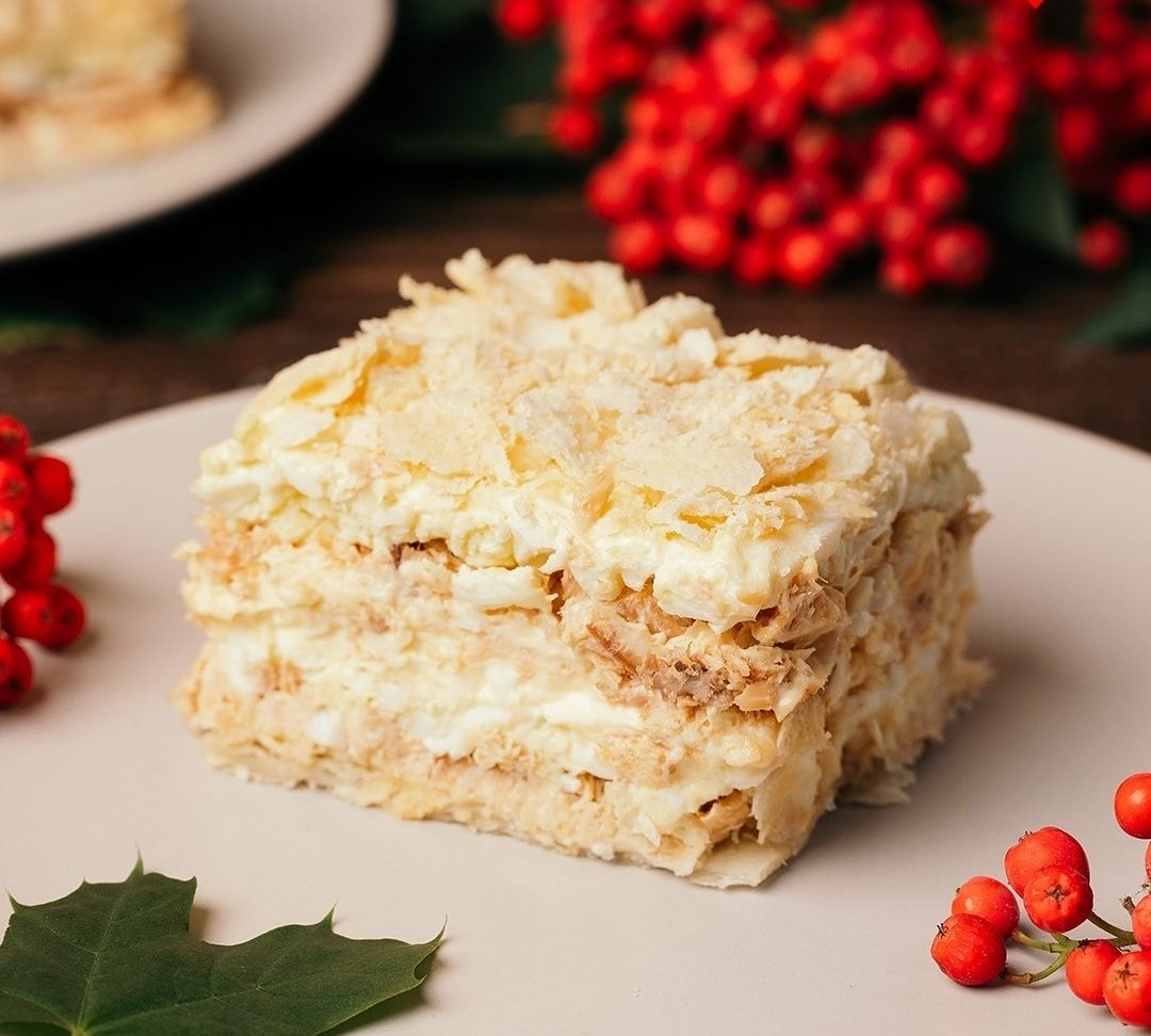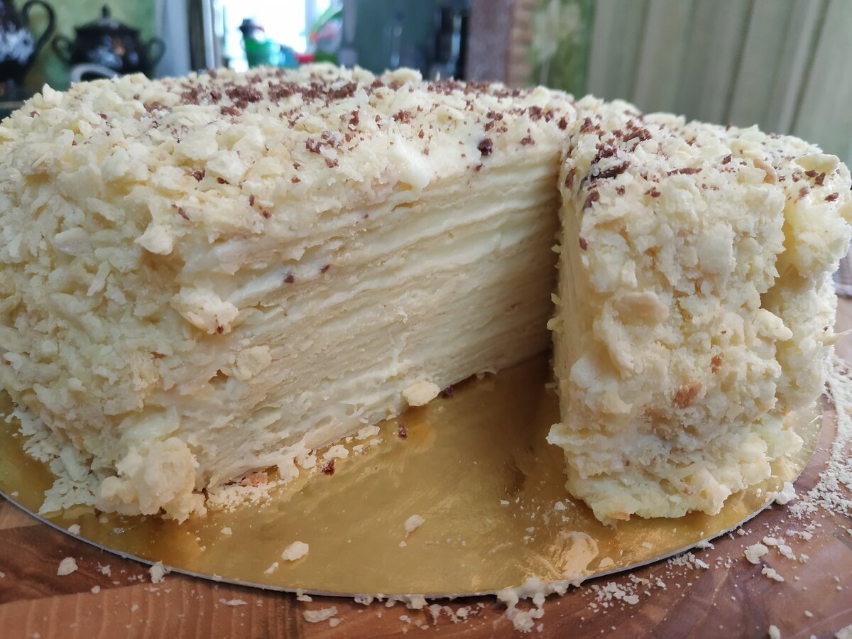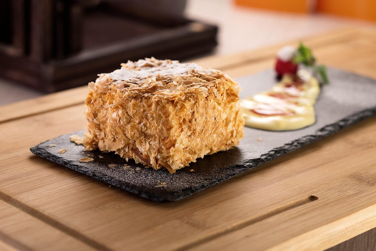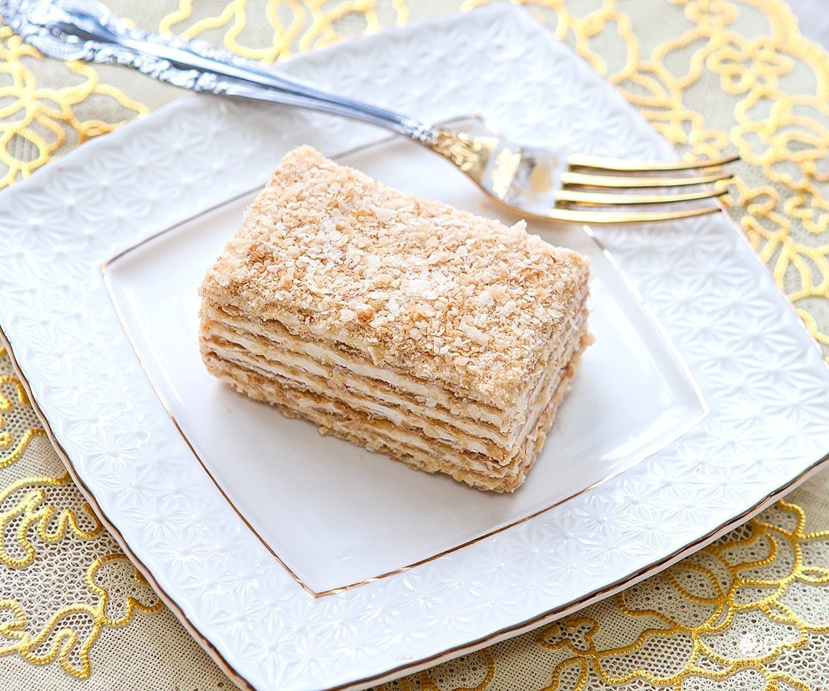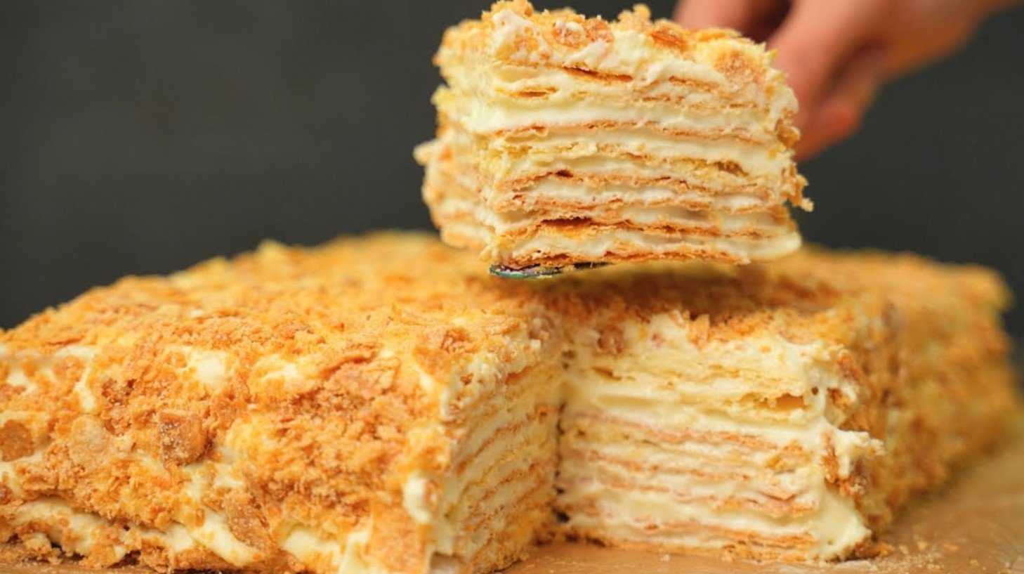 Ленивый Наполеон из слоеного теста с заварным кремом