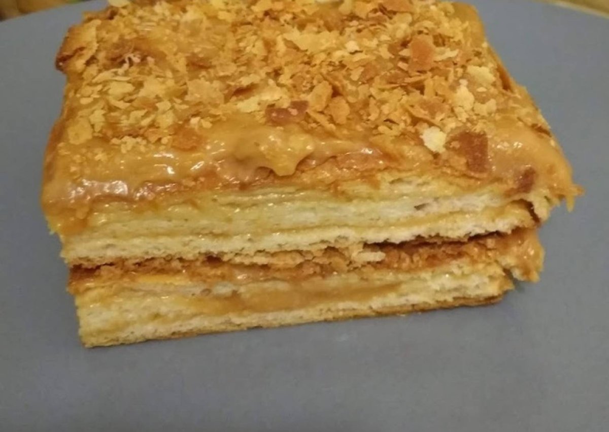 Торт Наполеон из готового слоеного теста со сгущенкой и маслом