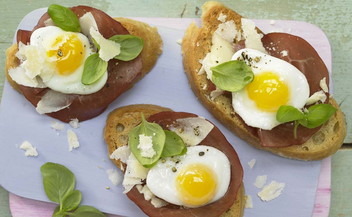Брускетта с перепелиным яйцом