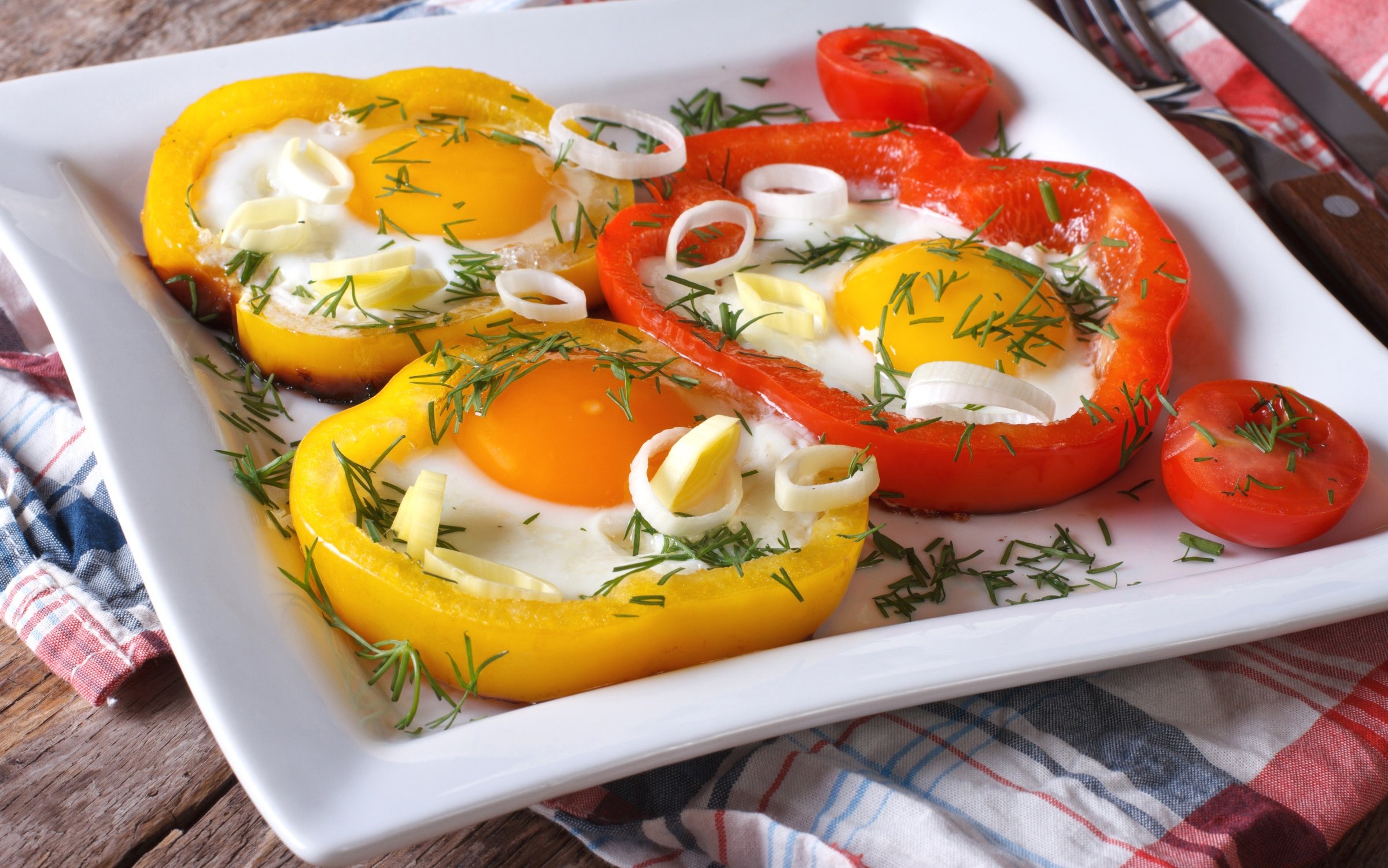 Яичница в болгарском перце на сковороде