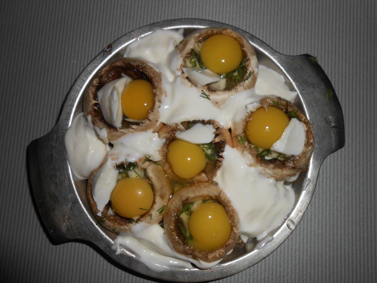 Шампиньоны фаршированные перепелиными яйцами на праздничный стол