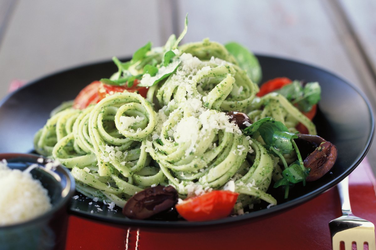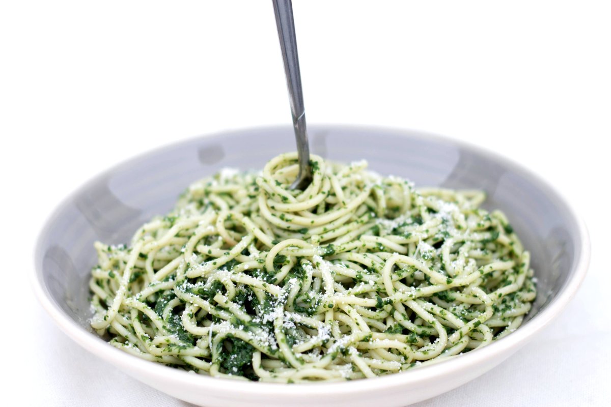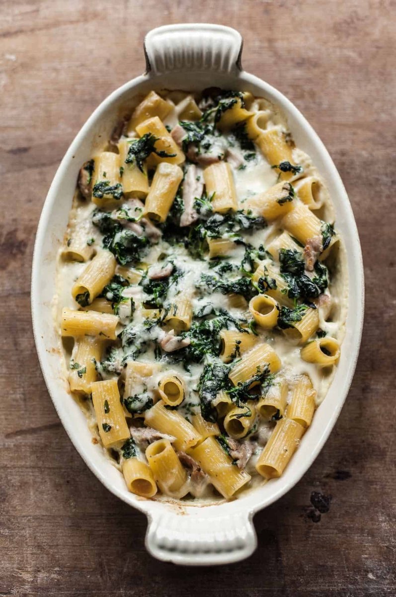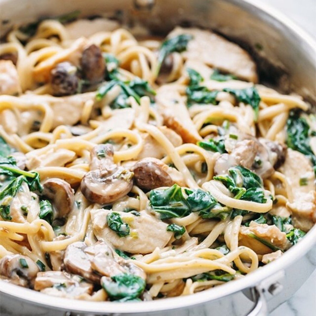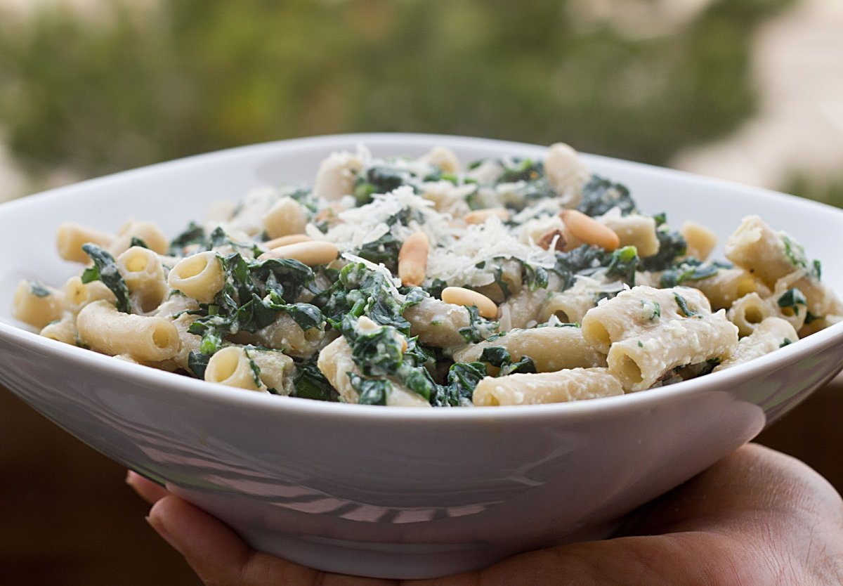 Паста с красной рыбой и шпинатом в сливочном соусе