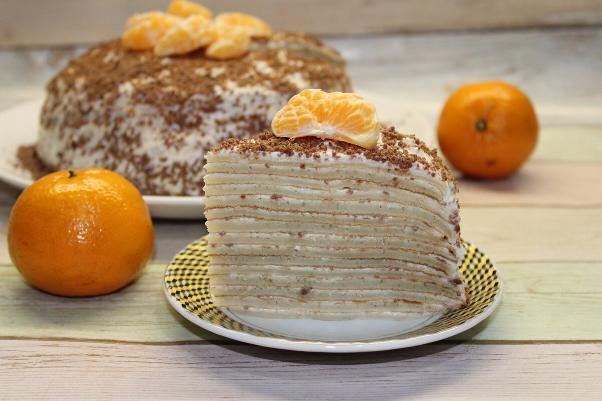 Блинный торт с апельсиновым заварным кремом