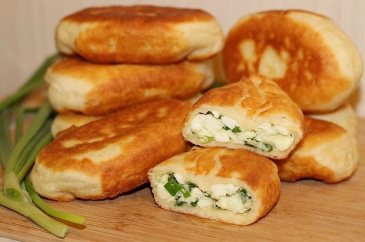 Пирожки с луком и яйцом жареные