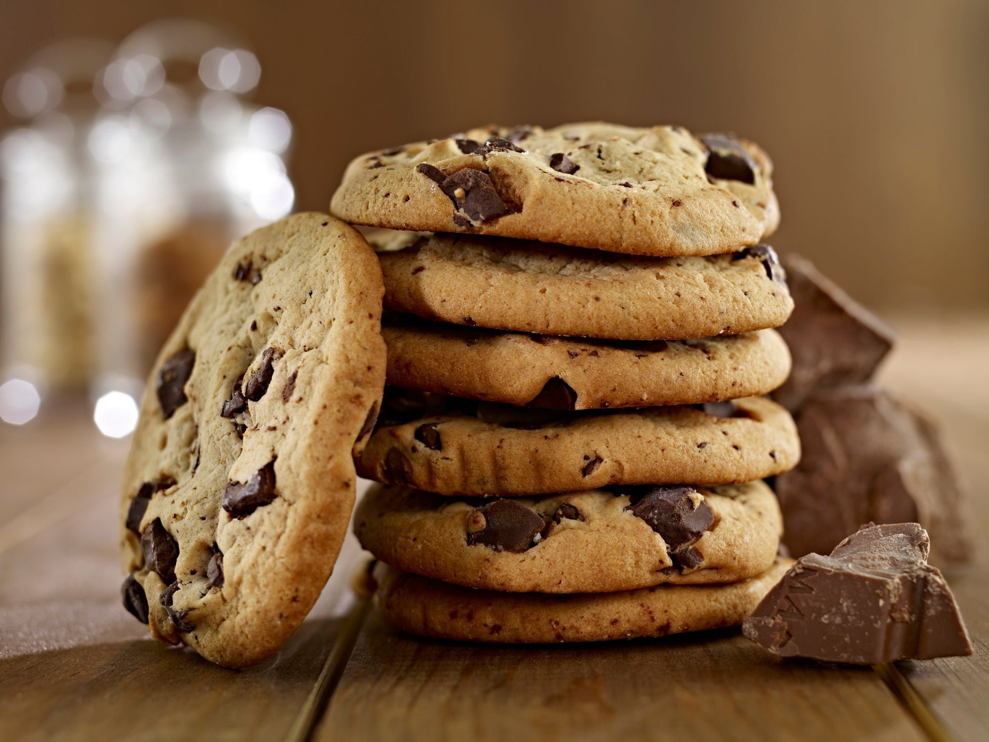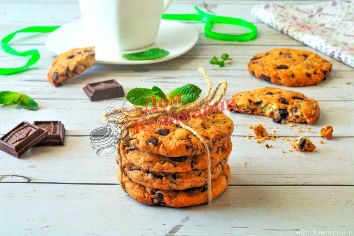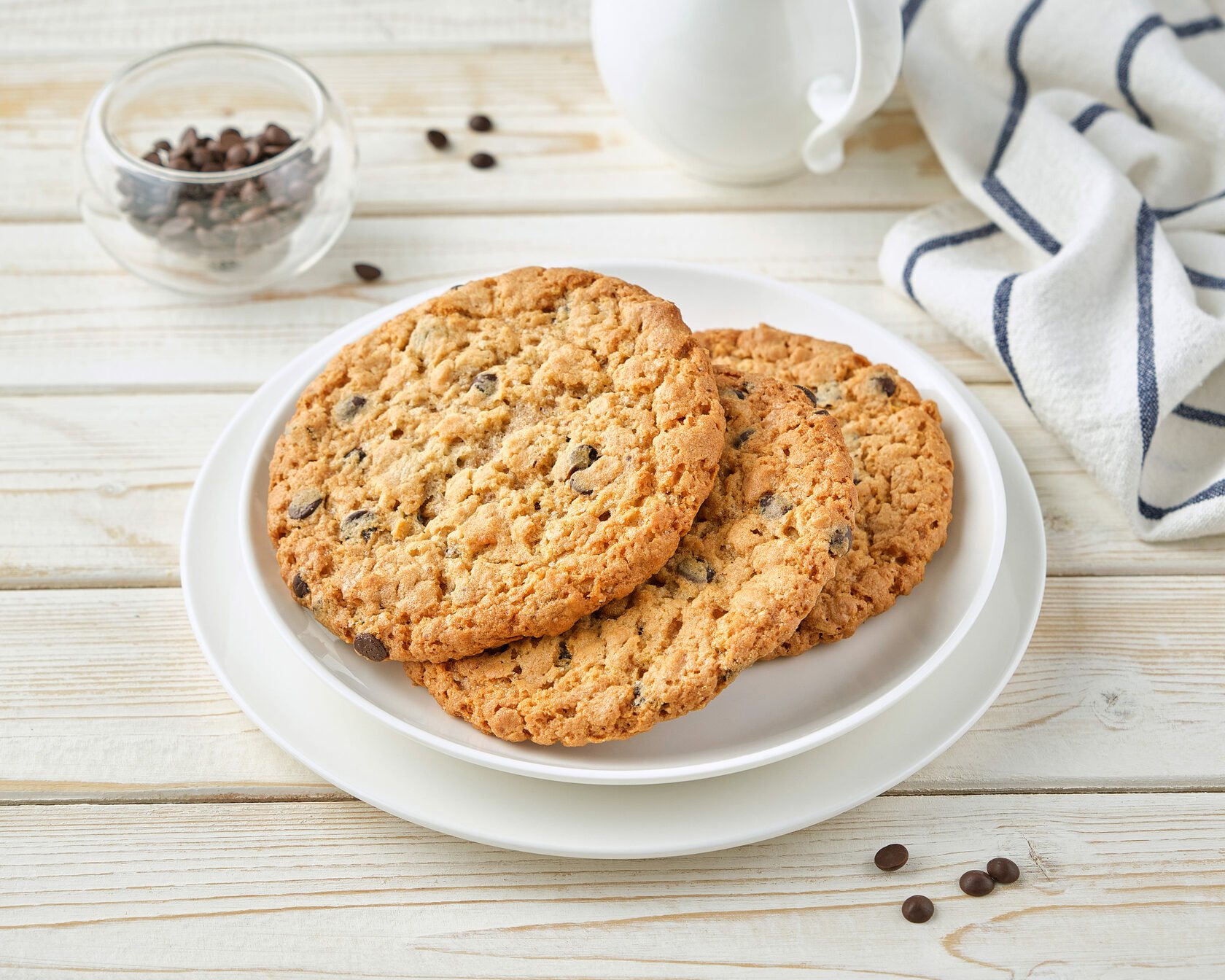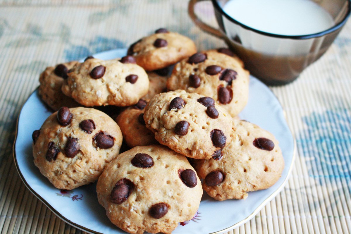 Домашнее печенье с шоколадной крошкой на белом фоне