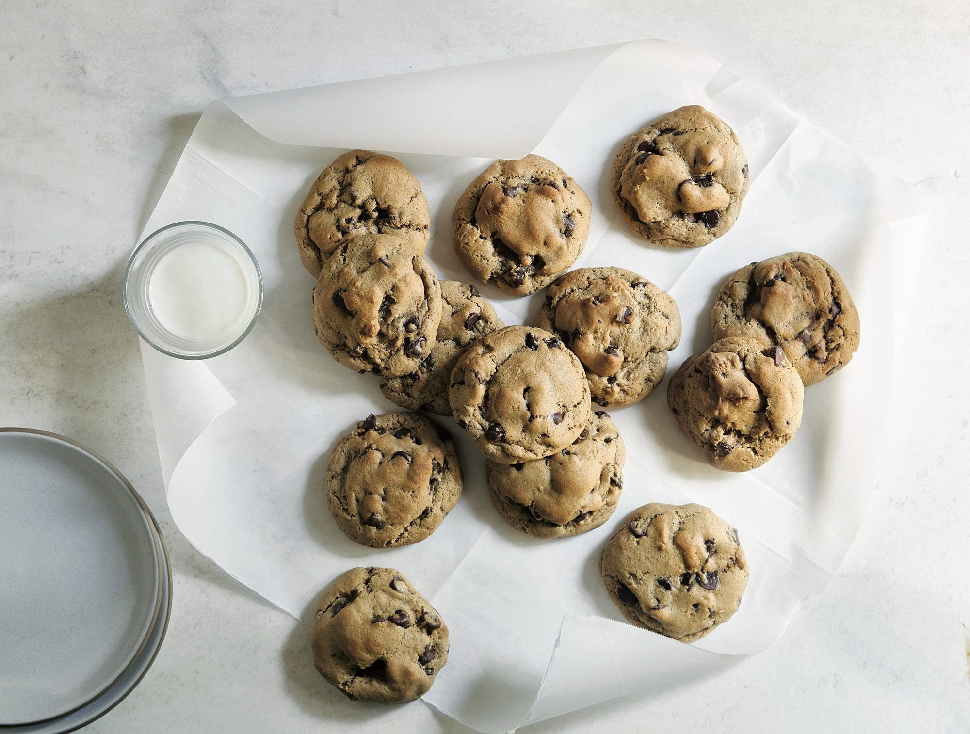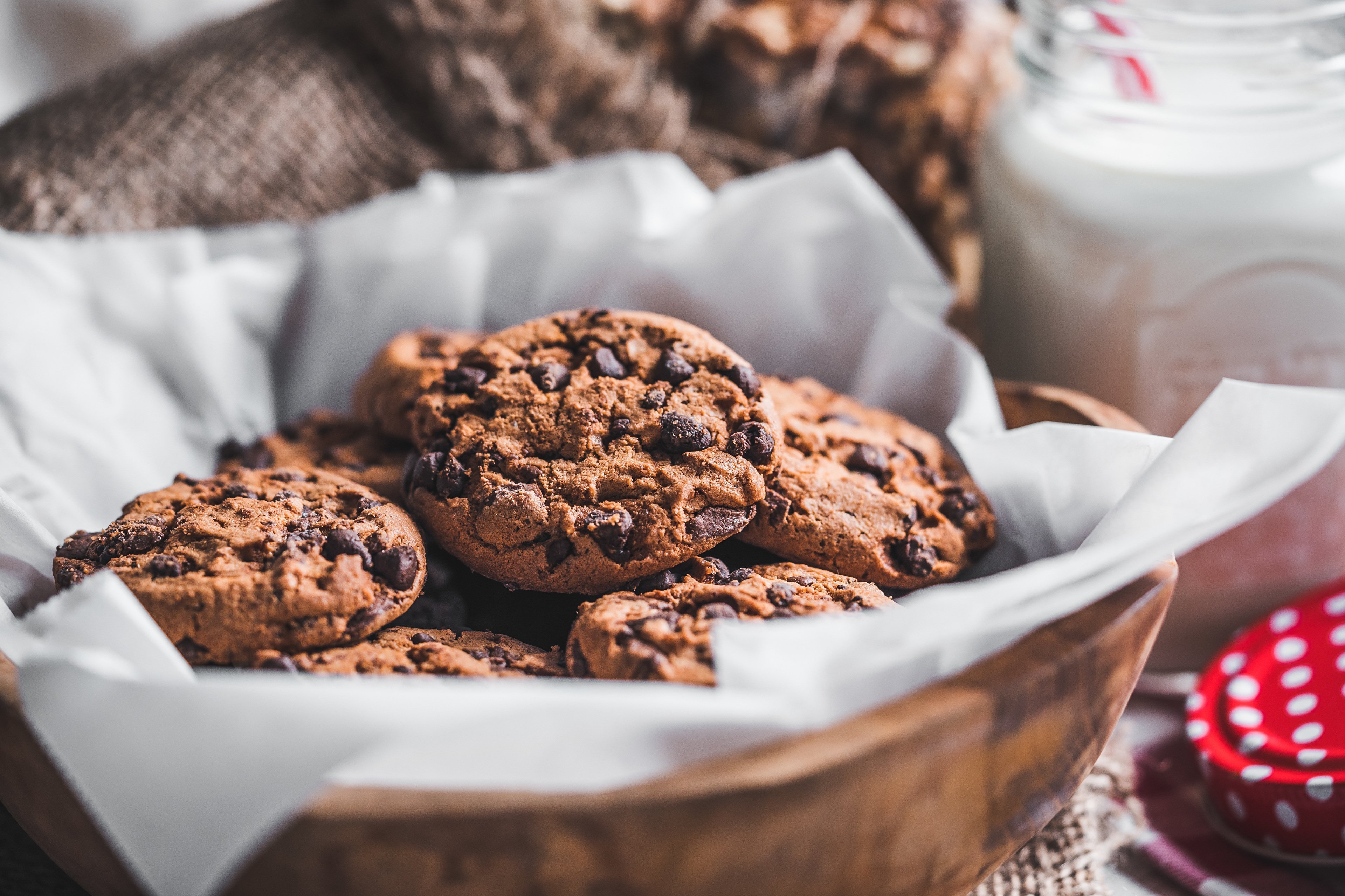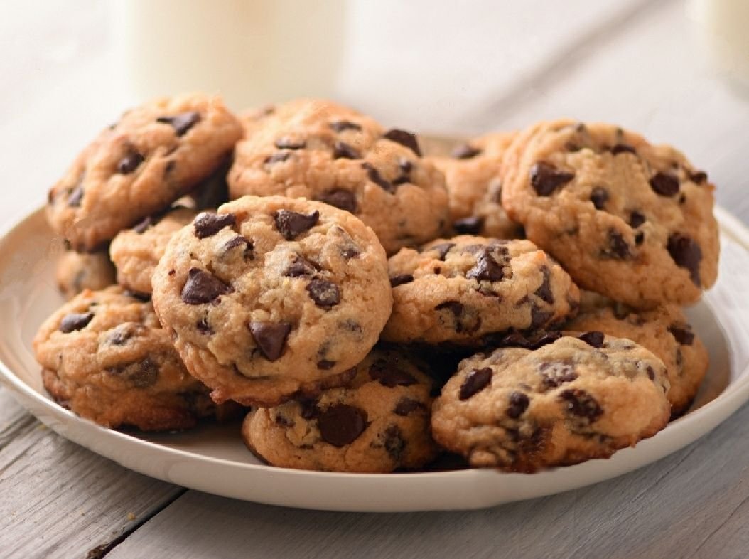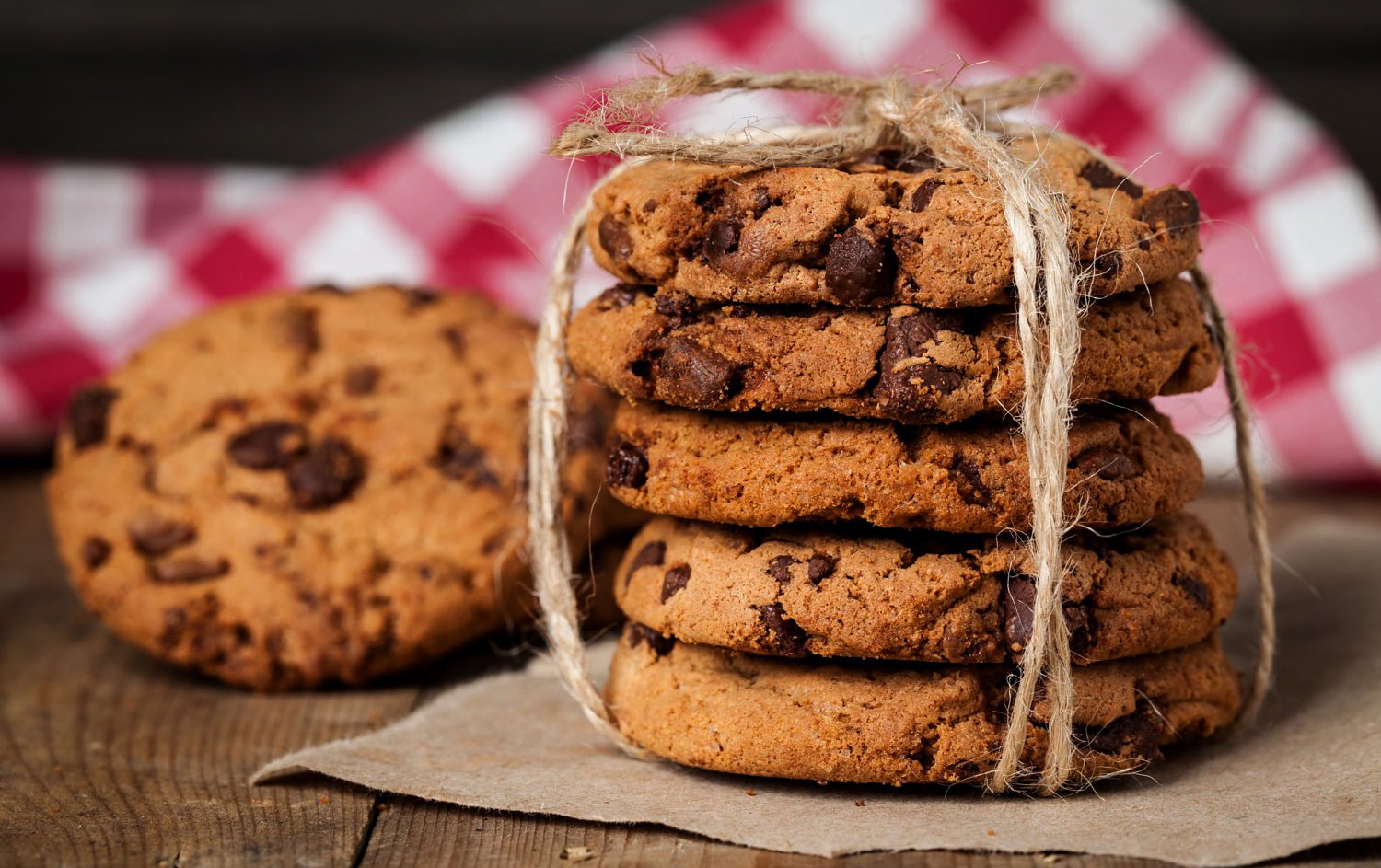 Домашнее печенье с шоколадной крошкой на белом фоне
