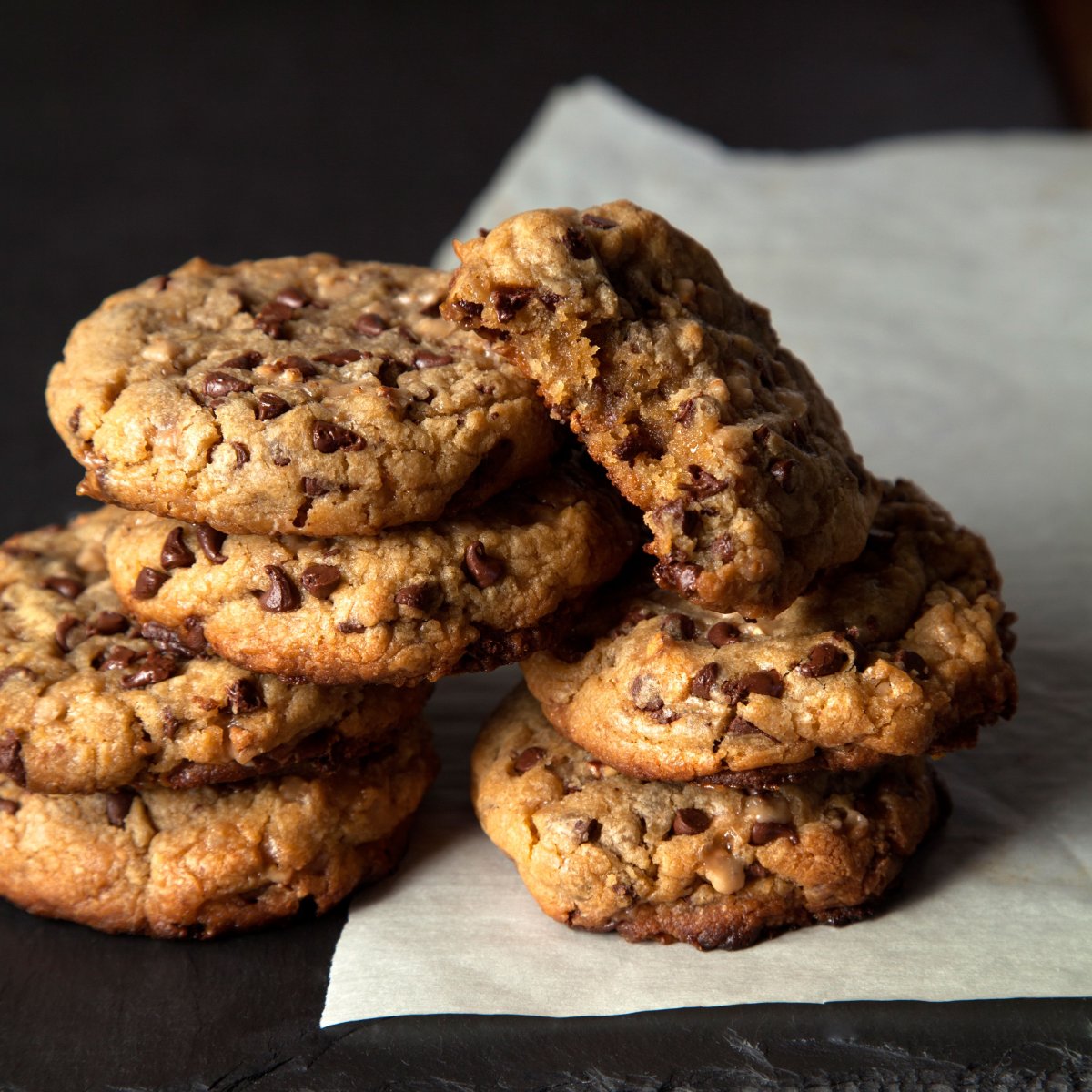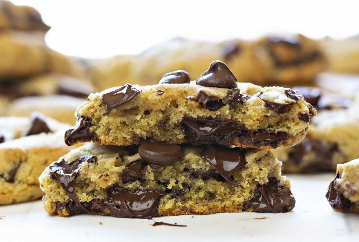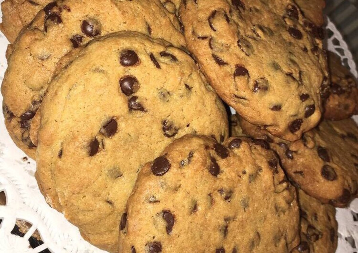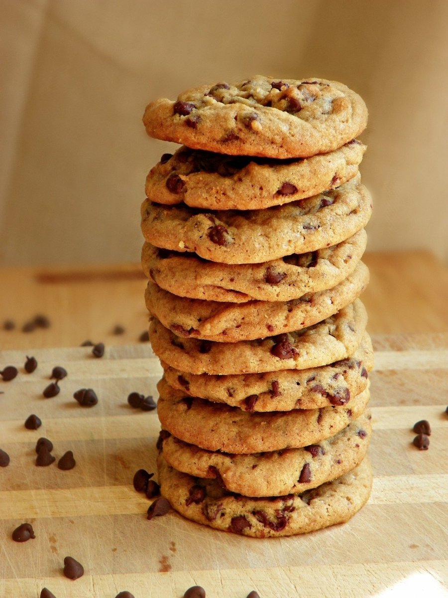 Домашнее печенье с шоколадной крошкой на белом фоне