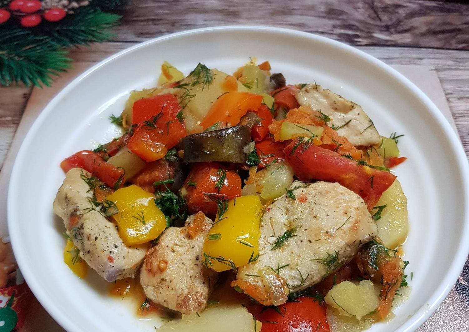 Куриная грудка с овощами