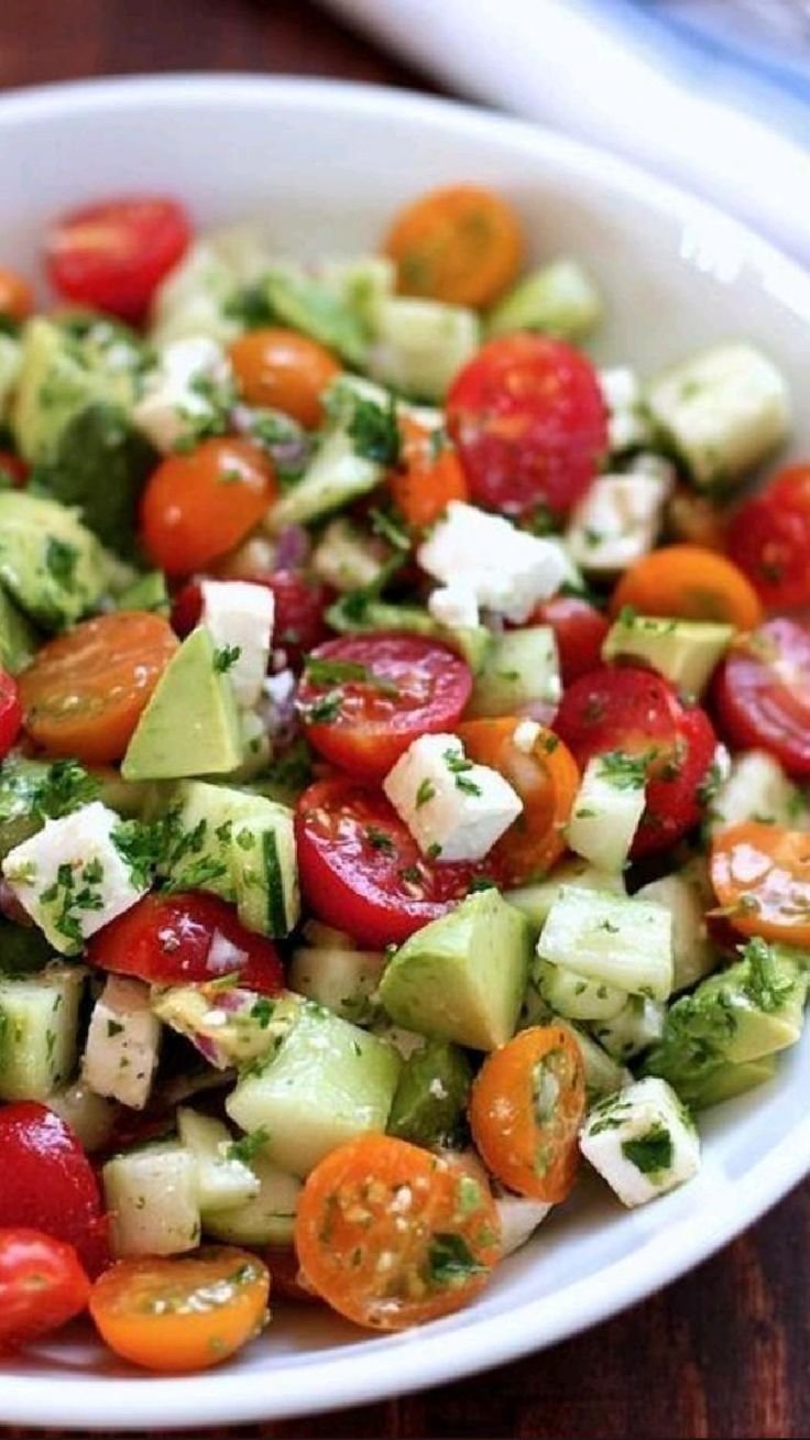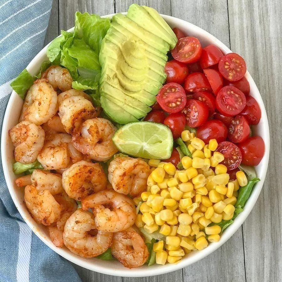 Салат с креветками авокадо и черри