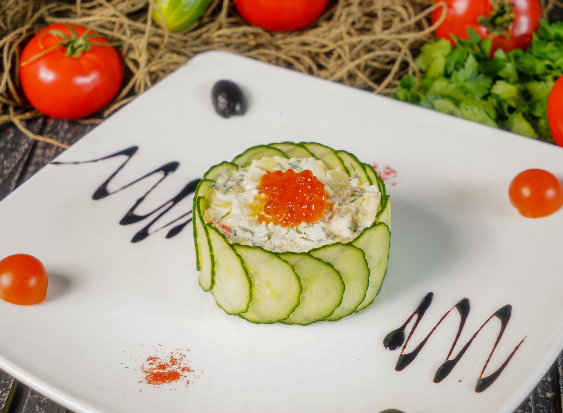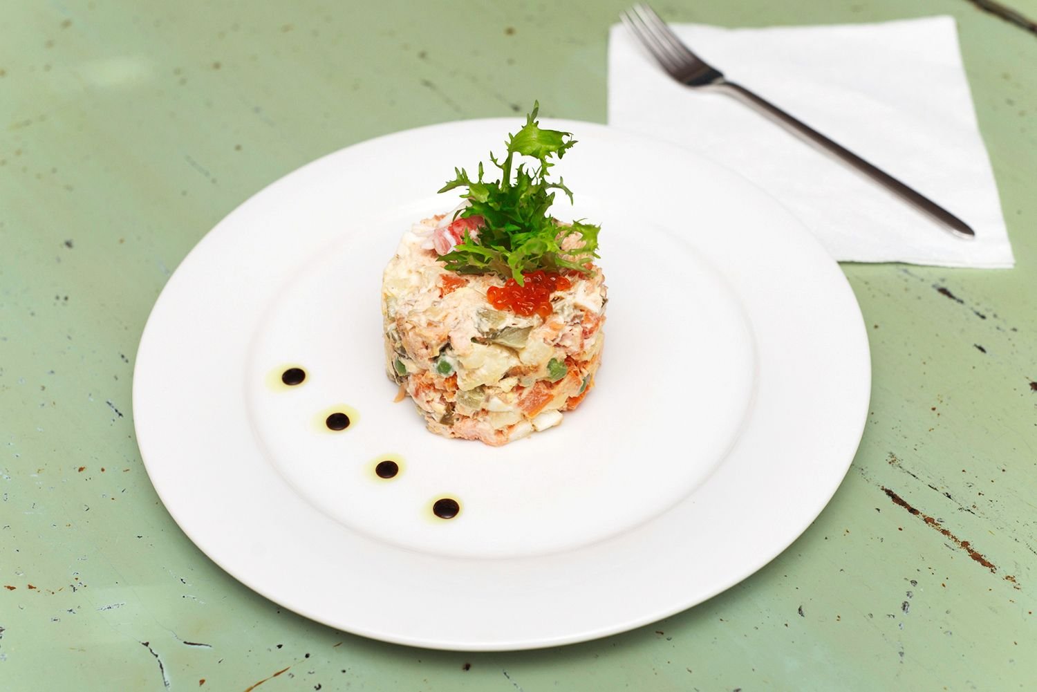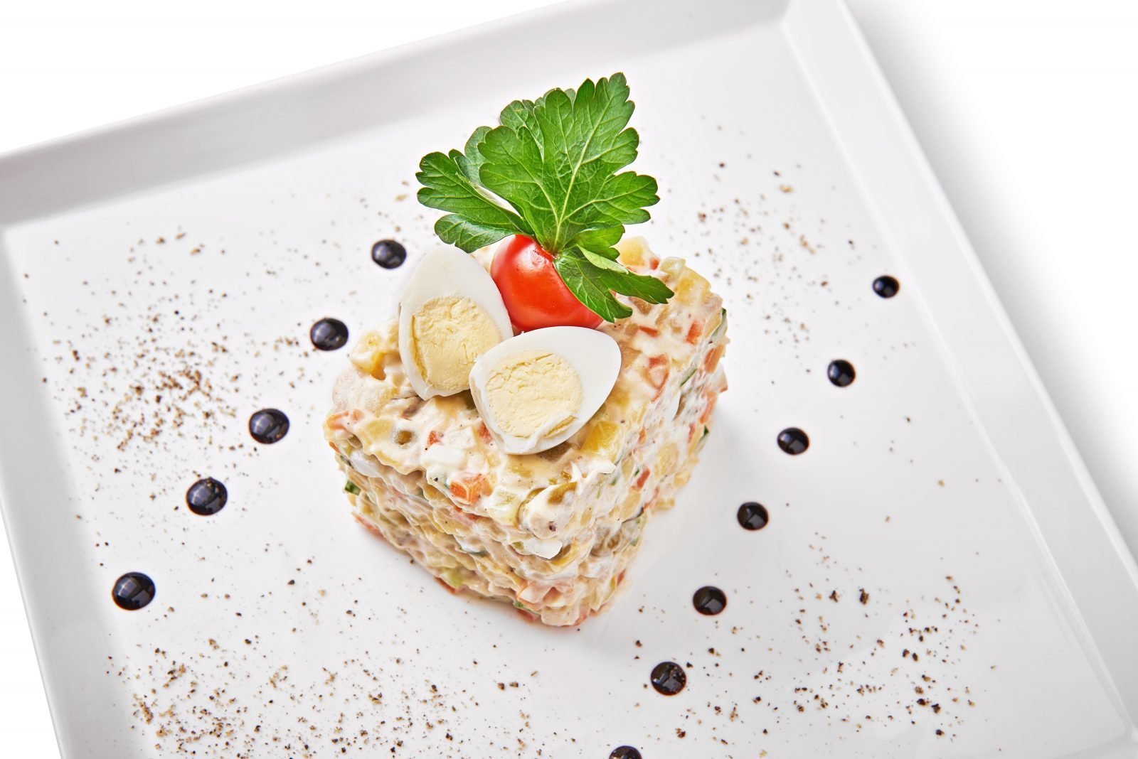 Оливье ресторанная подача