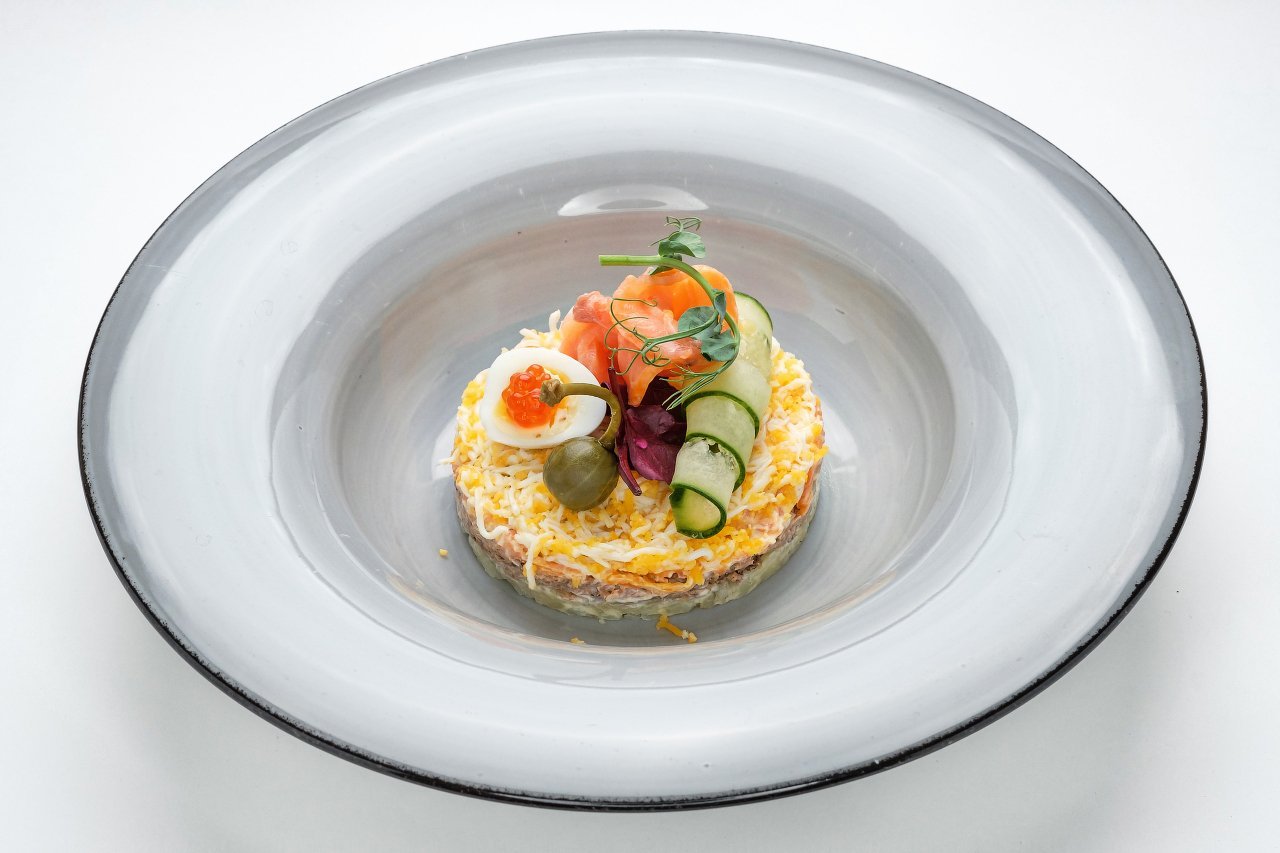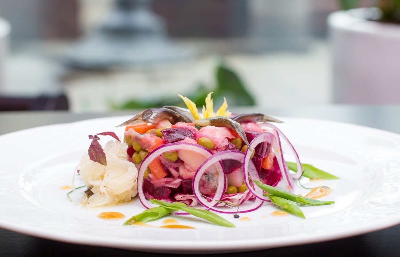 Винегрет с килькой ресторанная подача