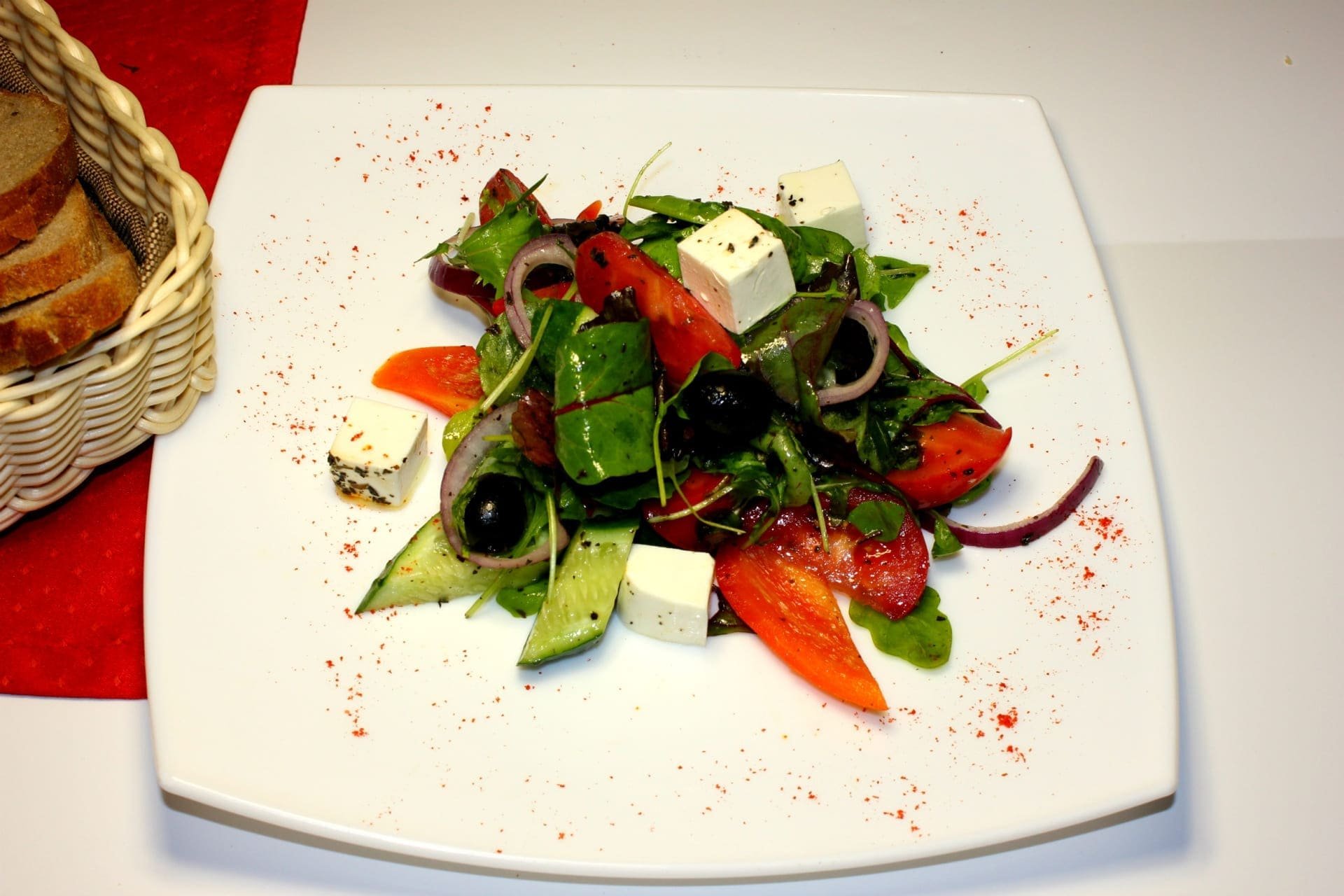 Греческий салат подача в ресторане