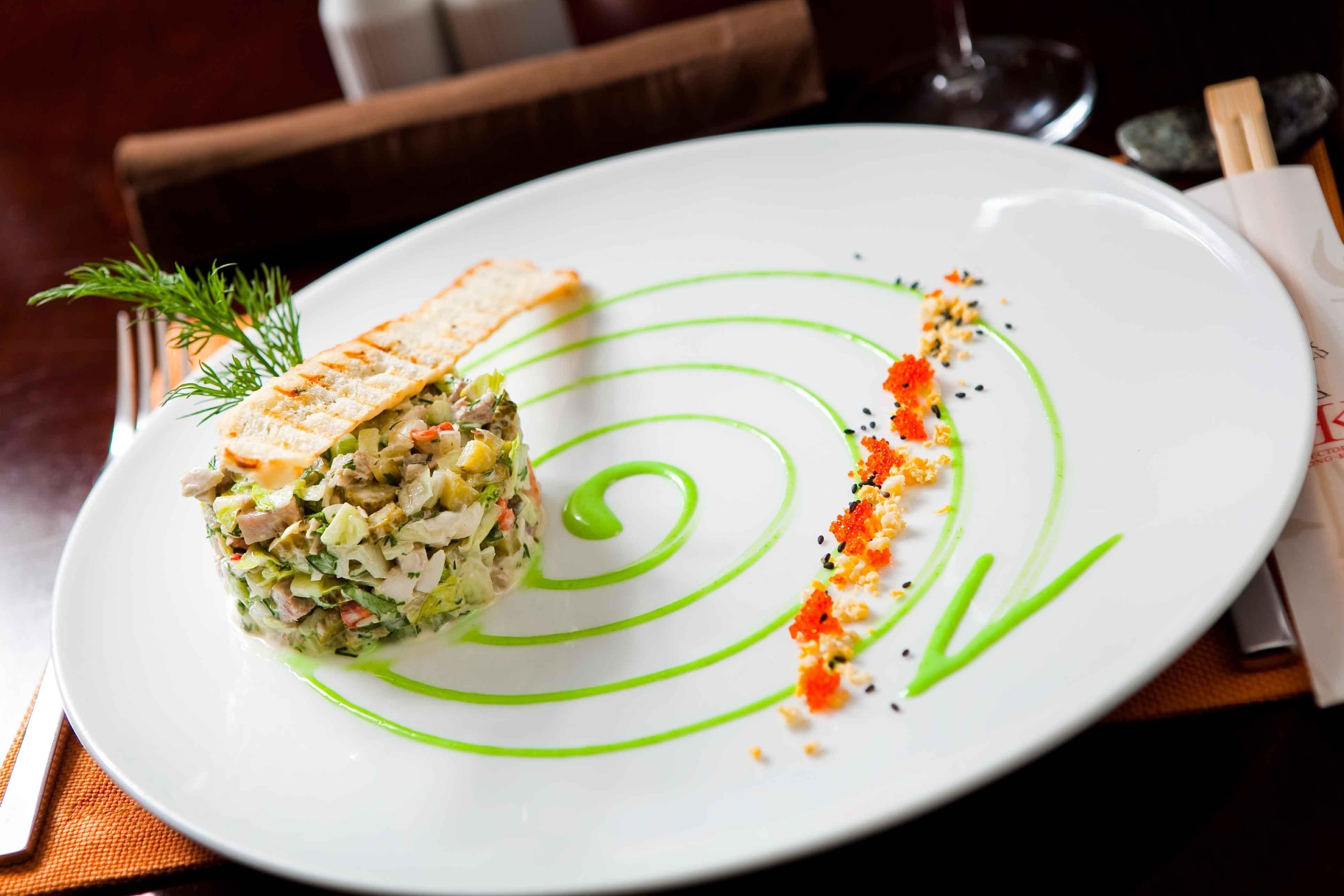 Украшение салатов в ресторане