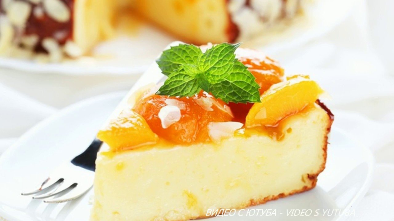 Творожный пирог с персиками консервированными