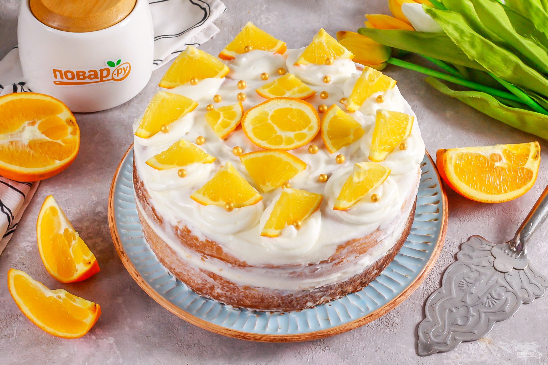 Декор торта апельсинами