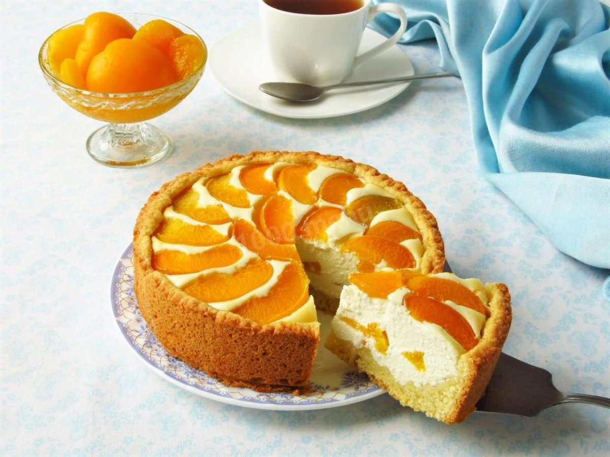 Пирог с творогом и персиками