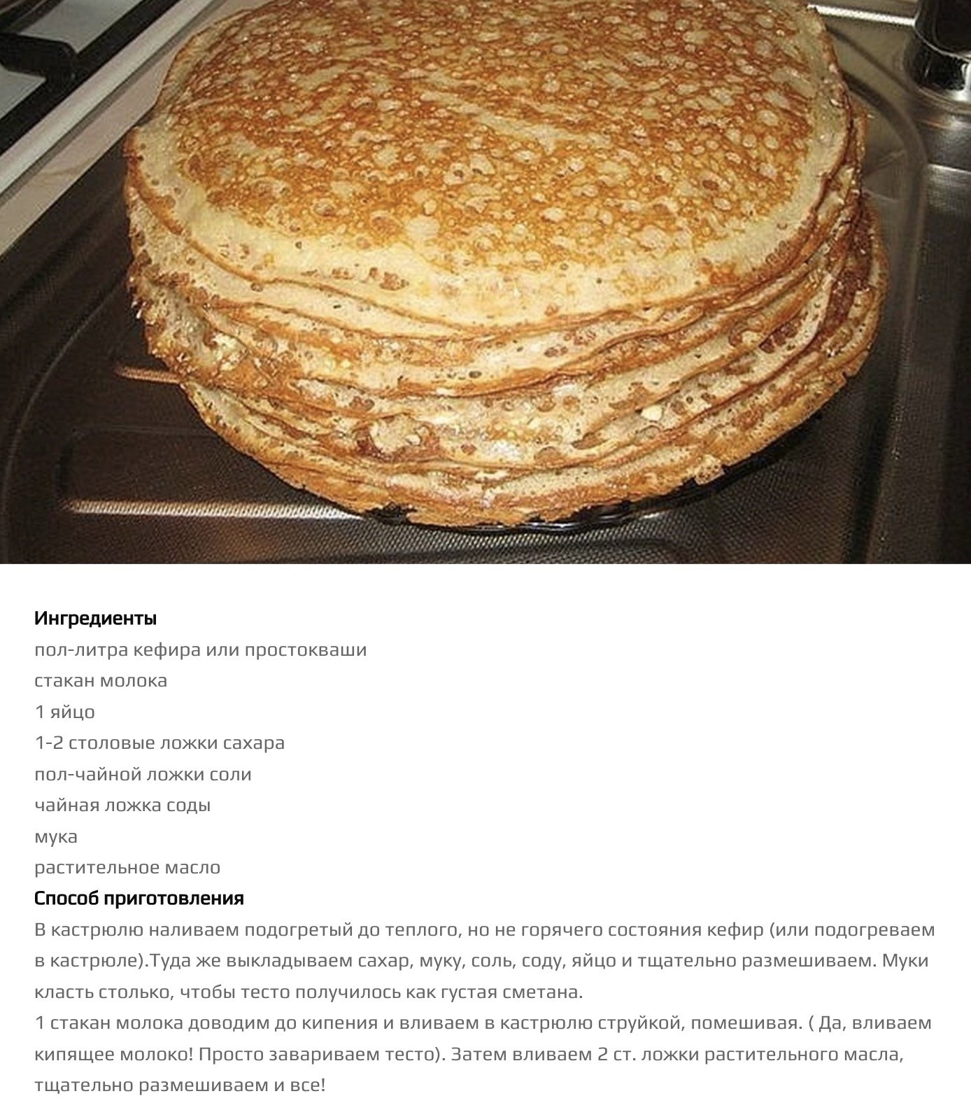 Рецепт блинов на молоке