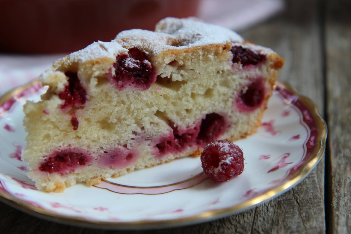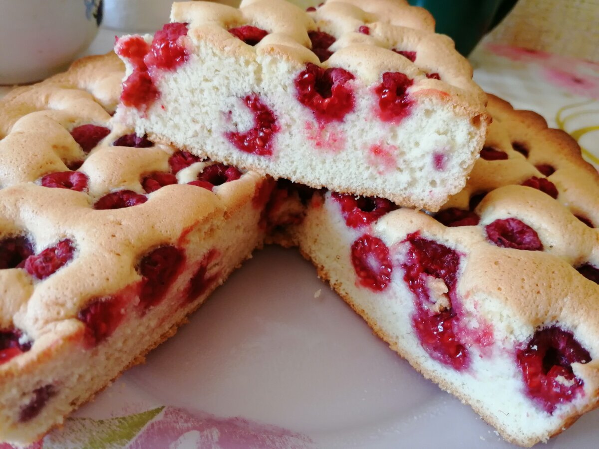 Творожный пирог с малиной