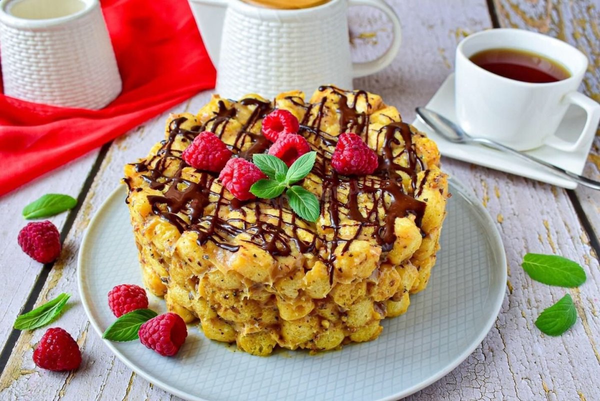Торт из кукурузных палочек без выпечки со сгущенкой