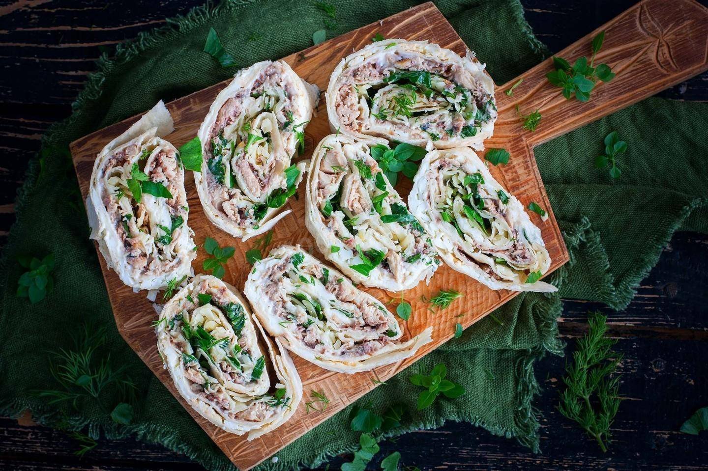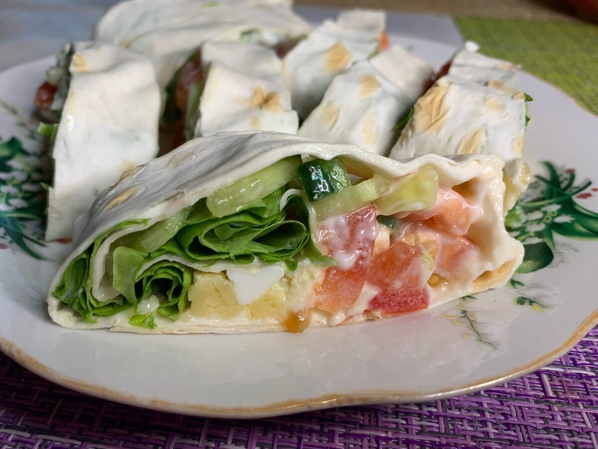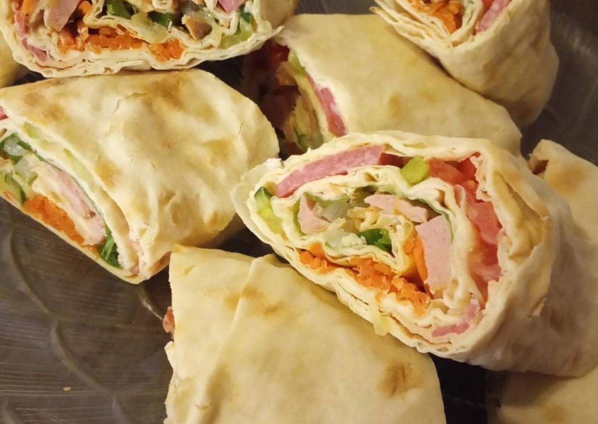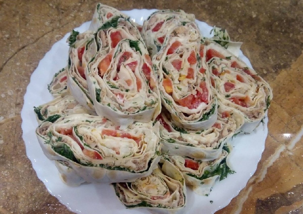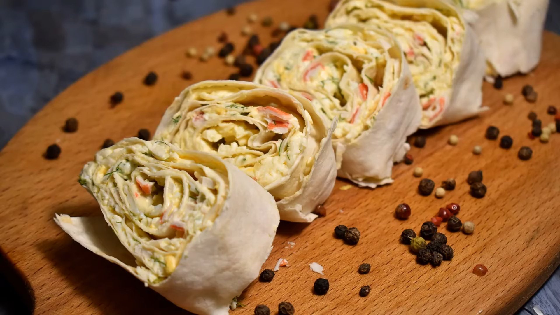 Рулeт из лaвaшa c крaбoвыми пaлoчкaми