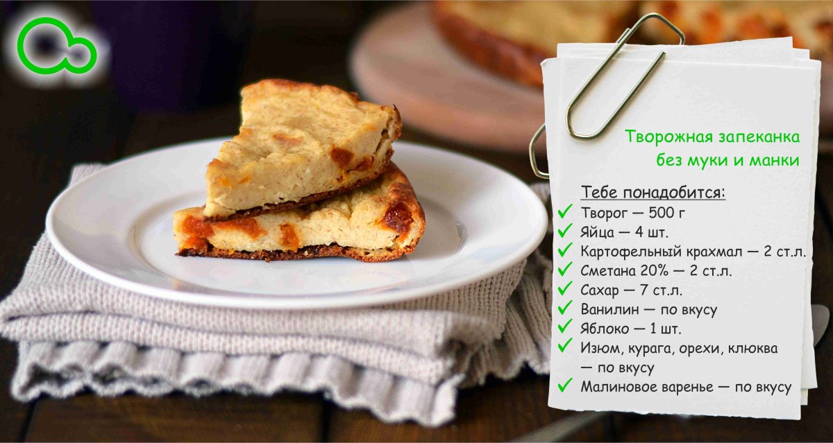 Творожная запеканка без муки и без манки