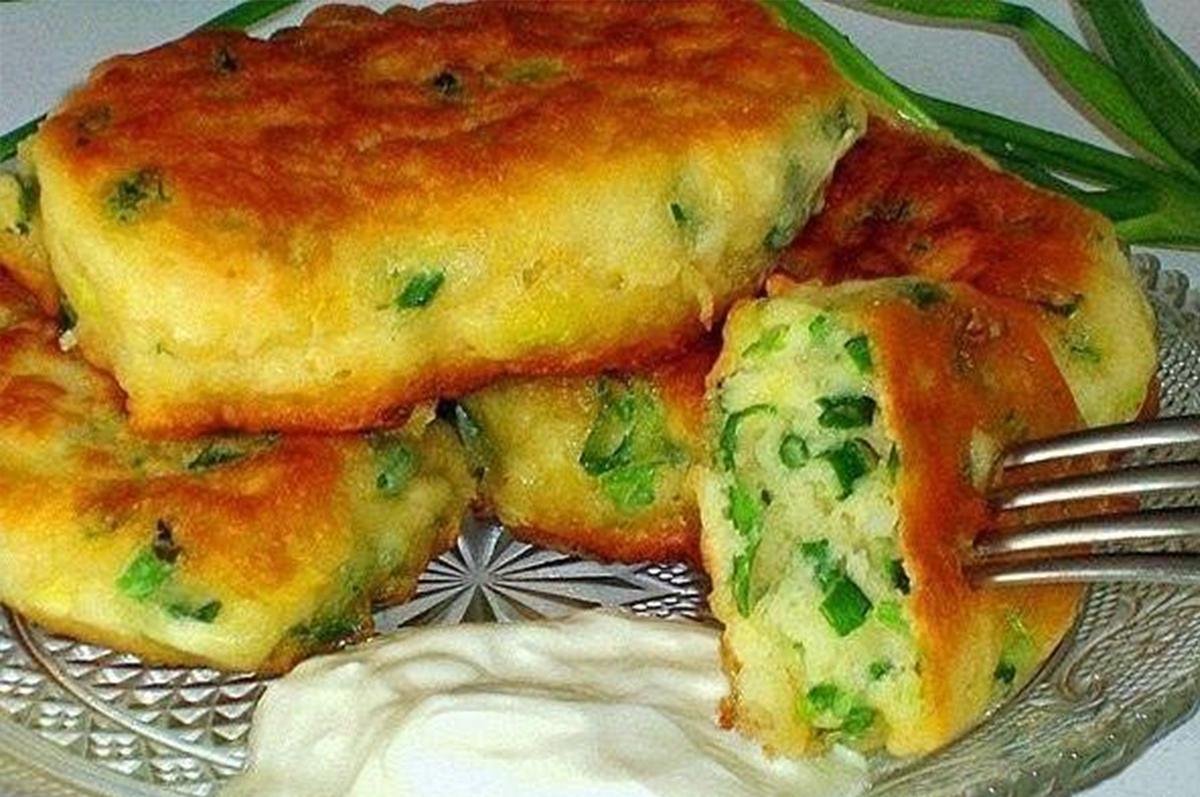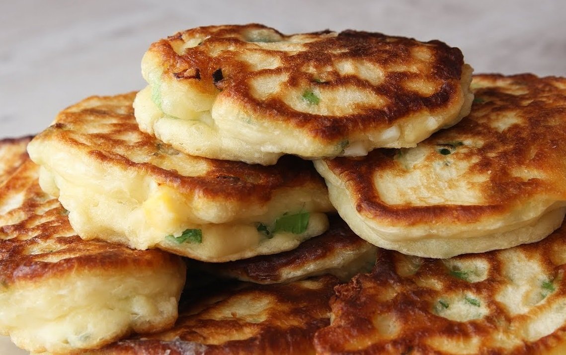 Оладьи с зеленым луком и яйцом
