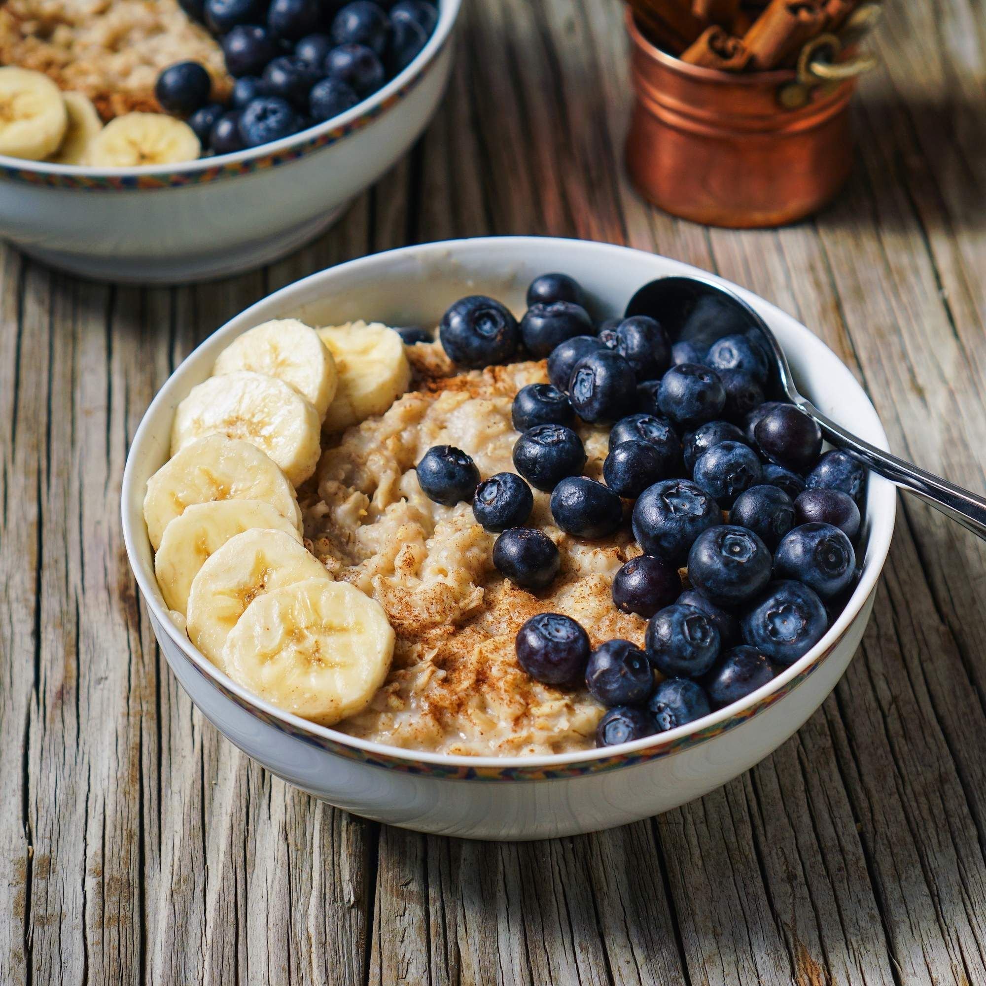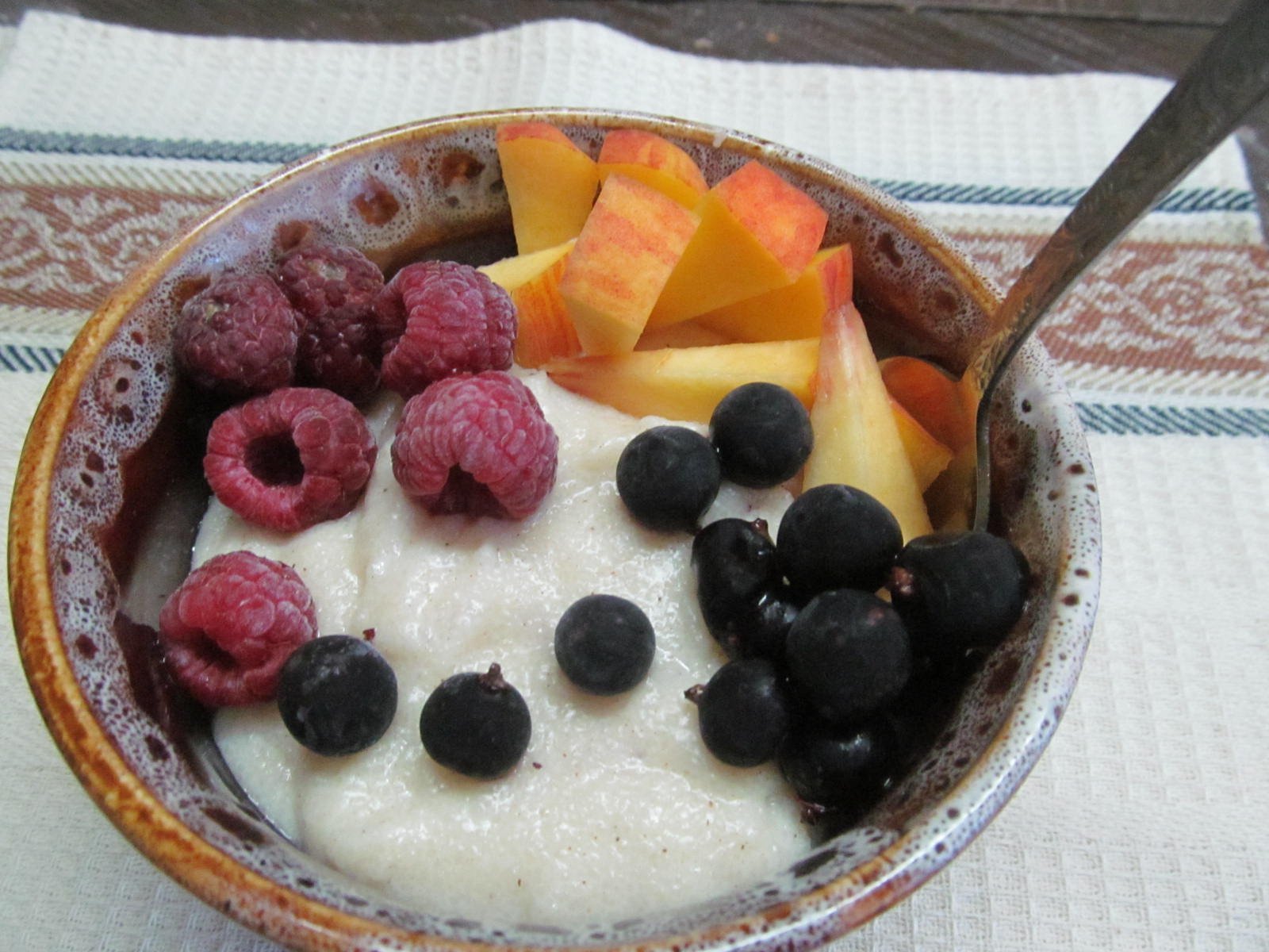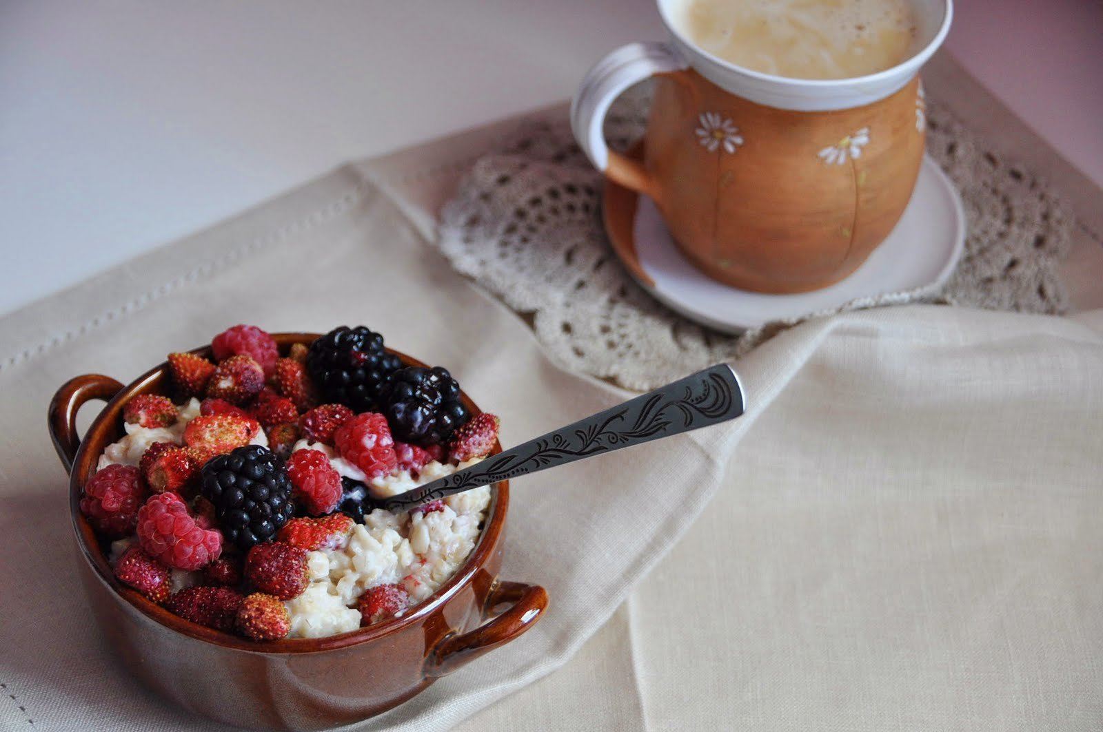 Завтрак каша с ягодами и кофе