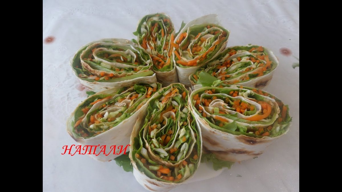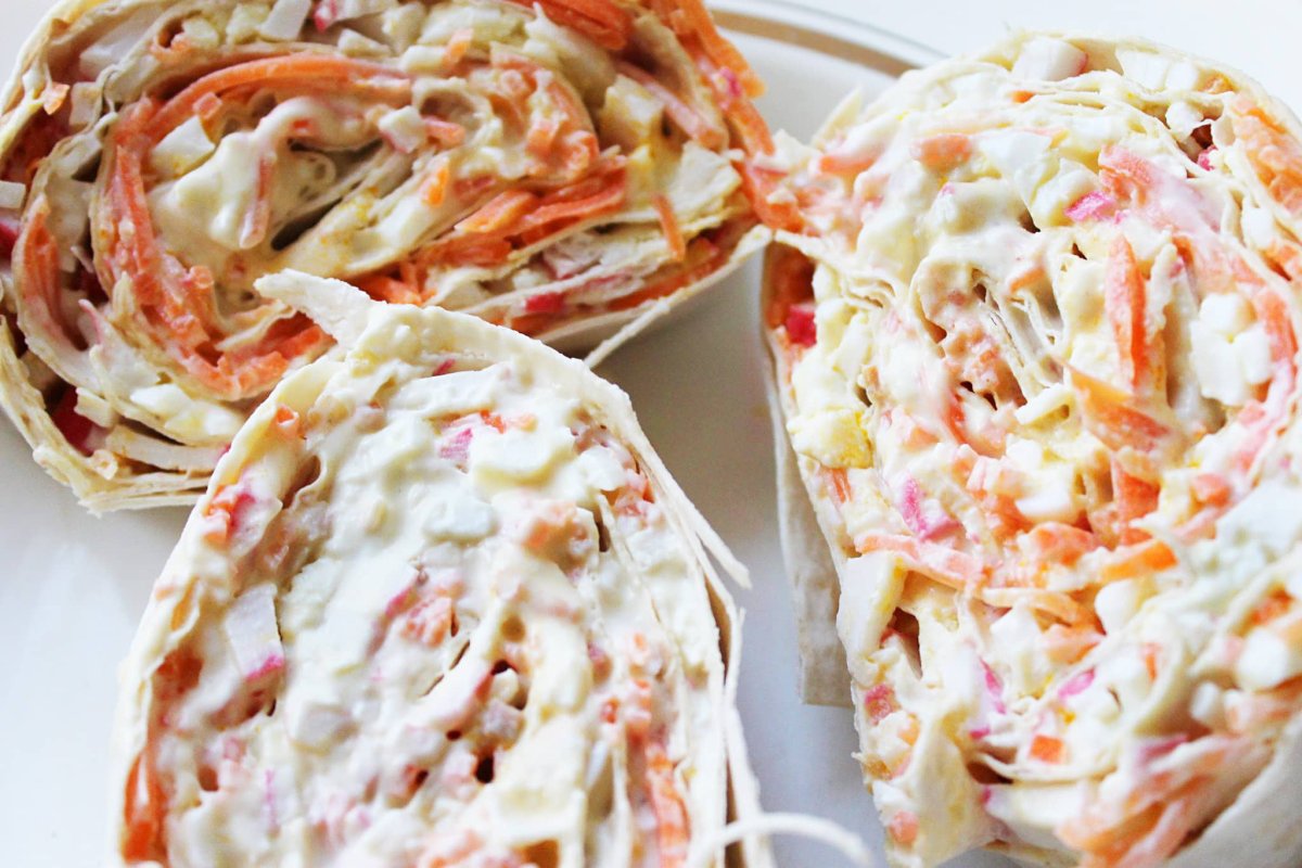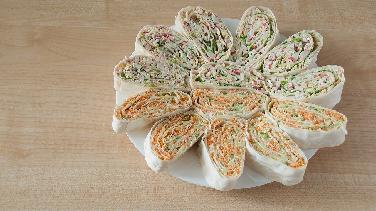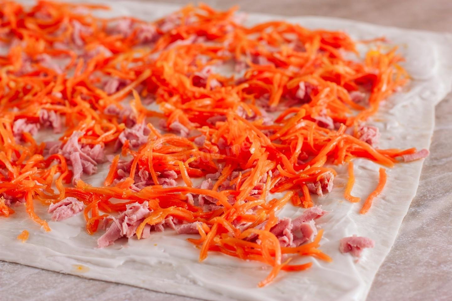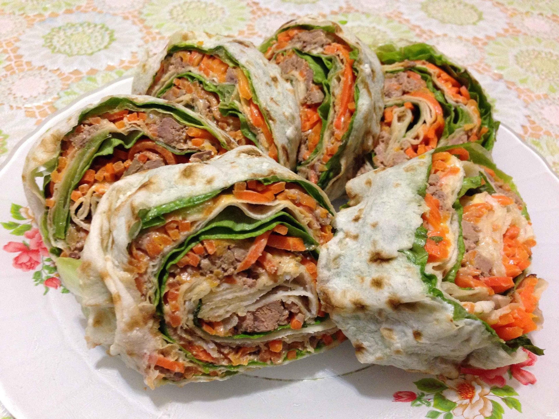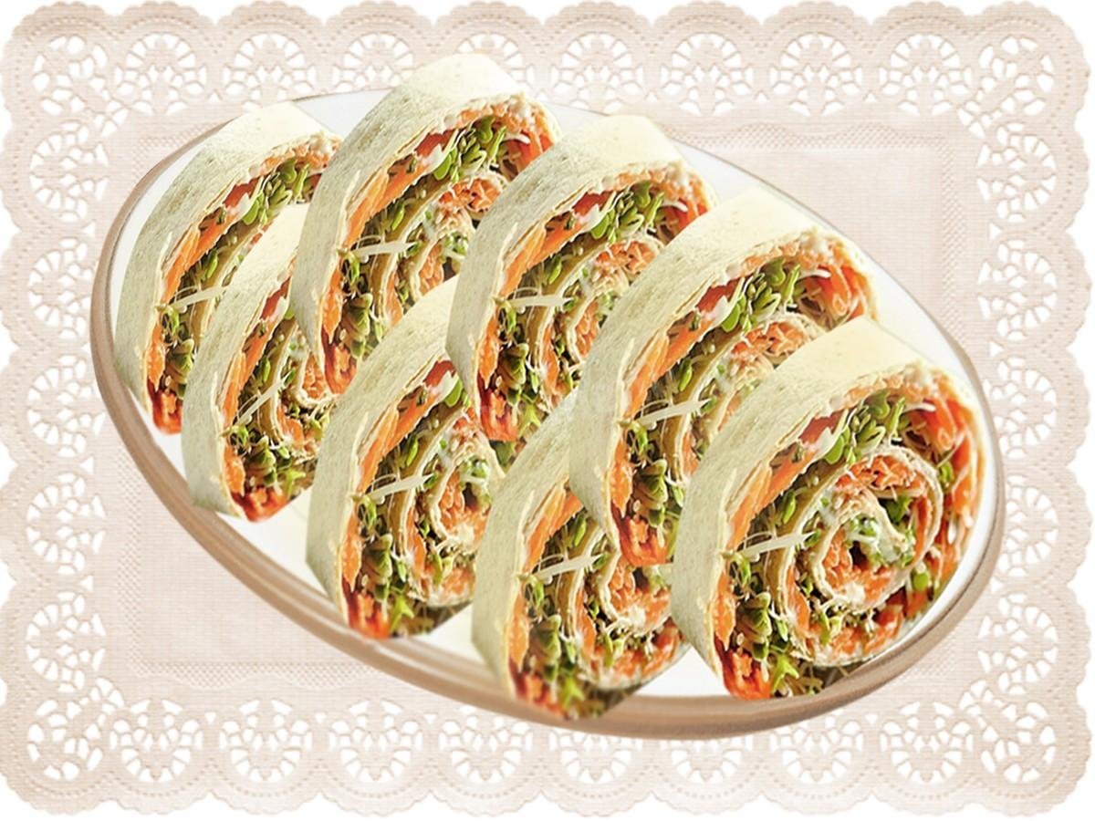 Рулет из лаваша с корейской морковью и сыром и зеленью