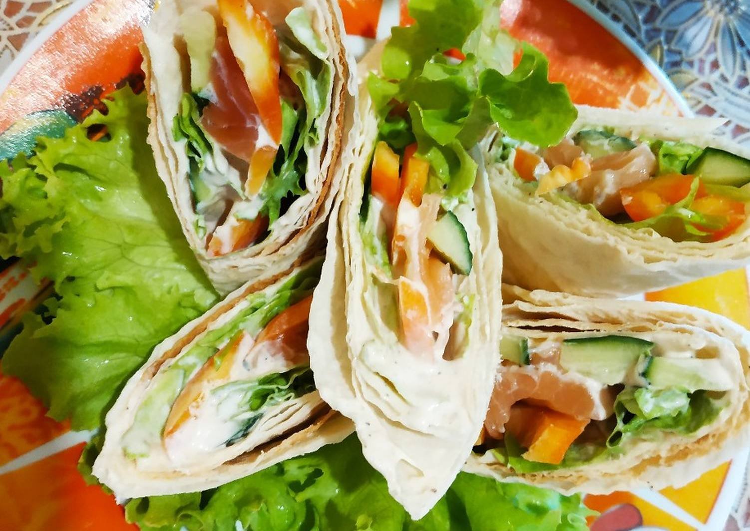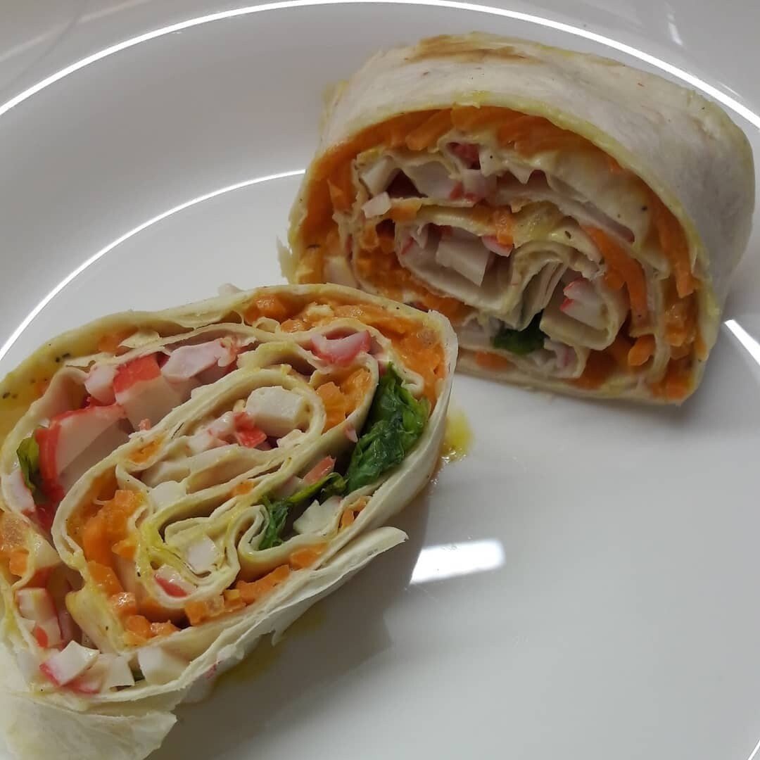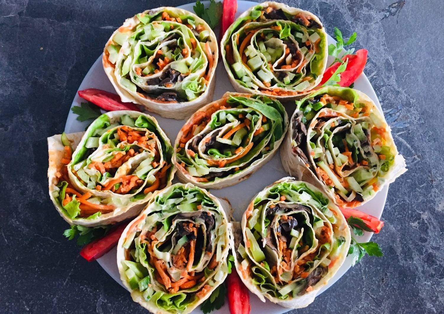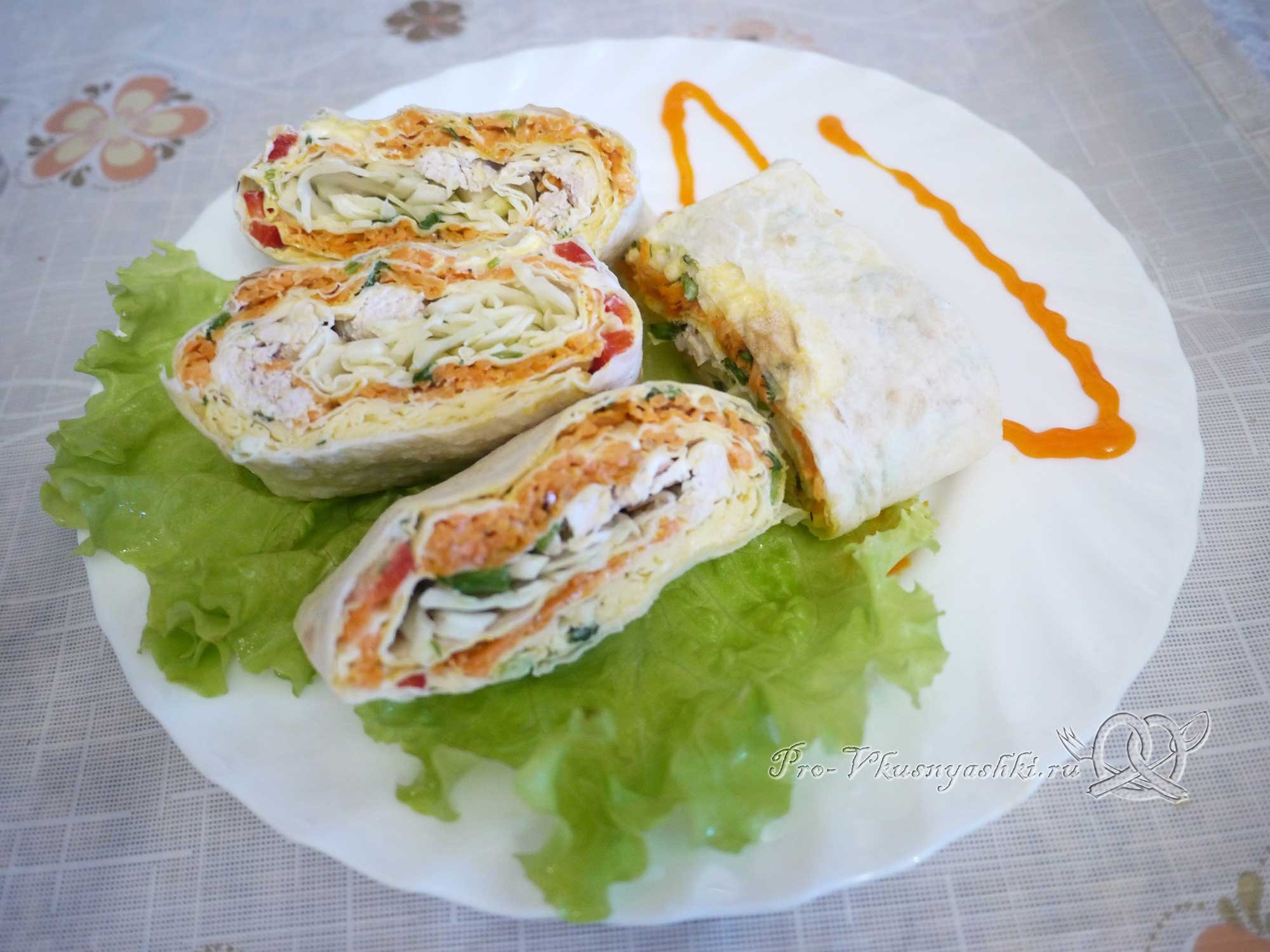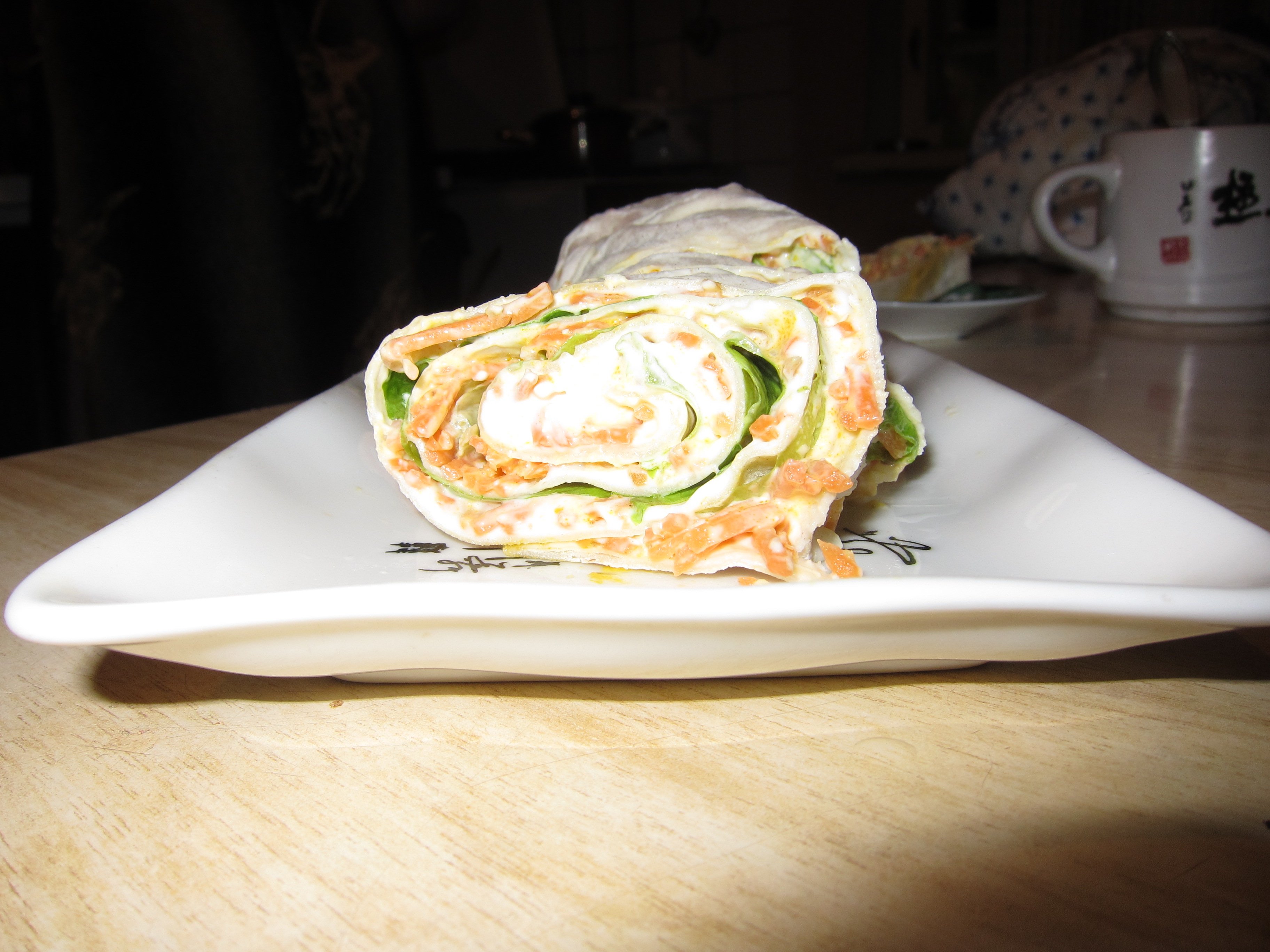 Рулет из лаваша с корейской морковью и сыром и зеленью
