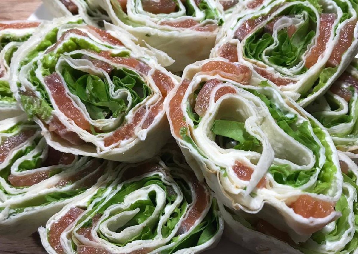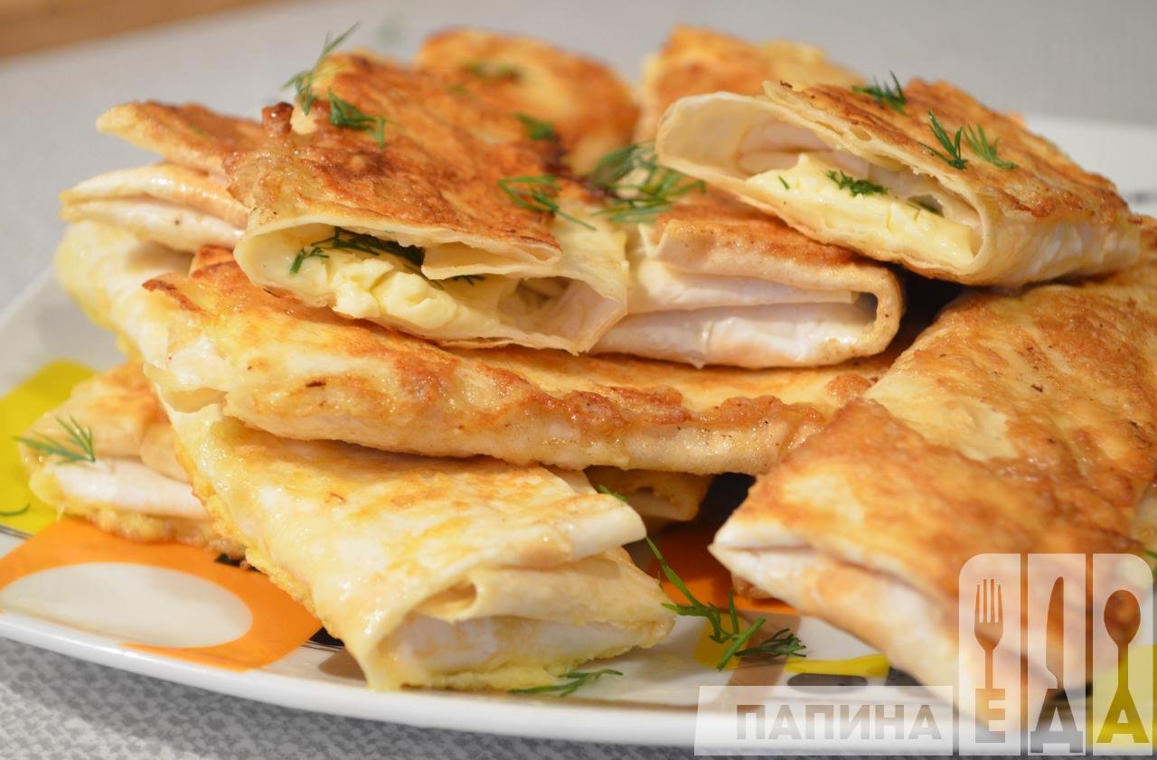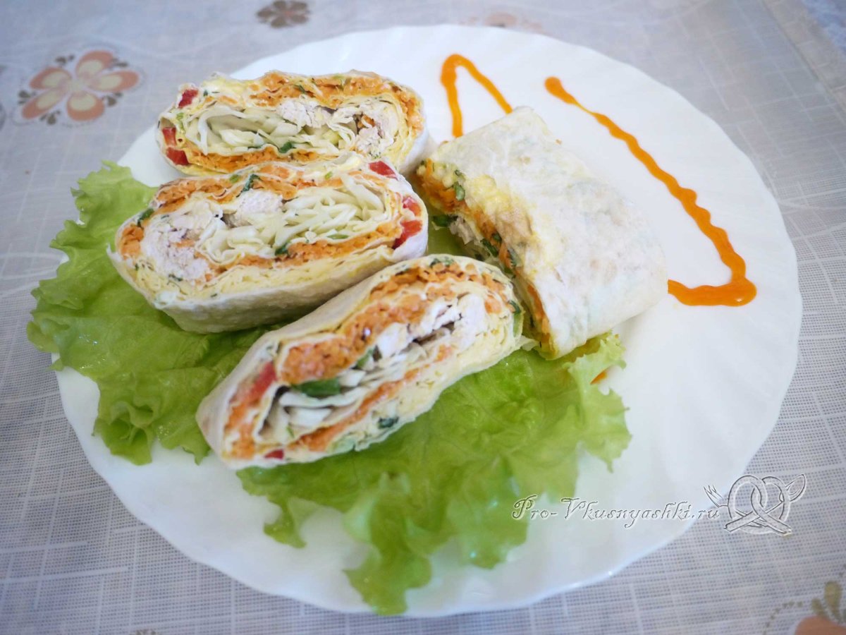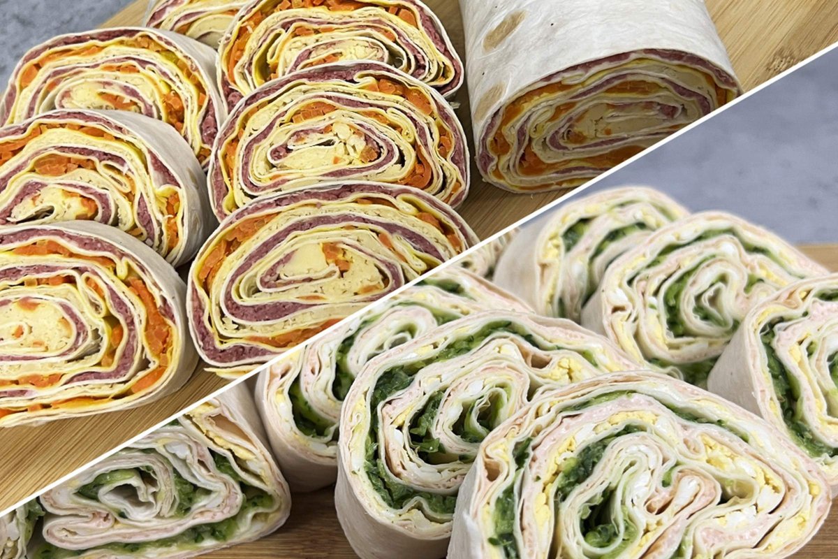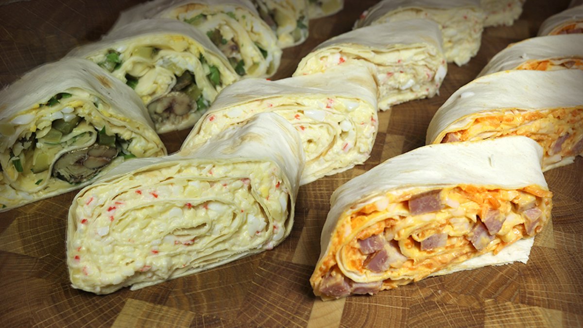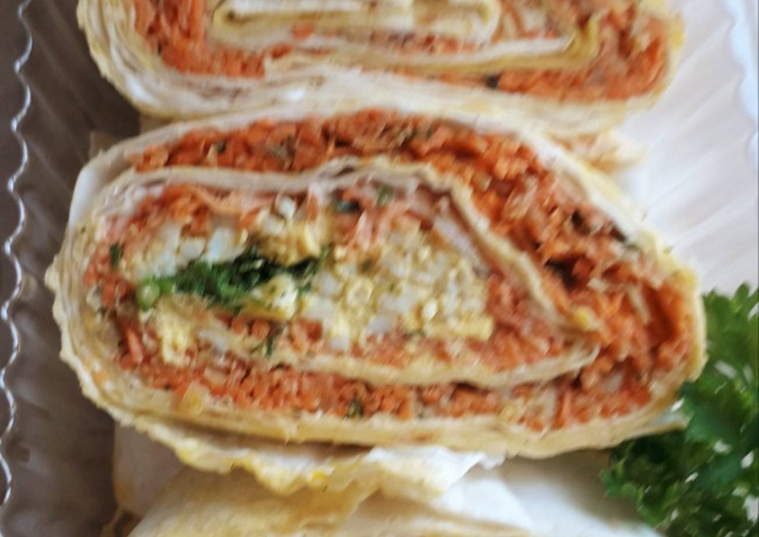 Рулет из лаваша, кинзы, яйца, корейской морковки
