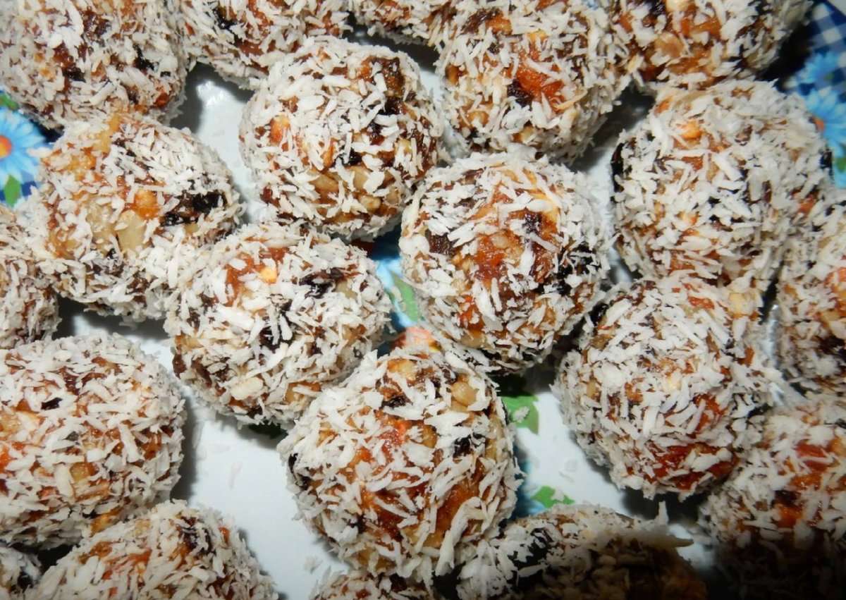 Конфеты из сухофруктов в кокосовой стружке