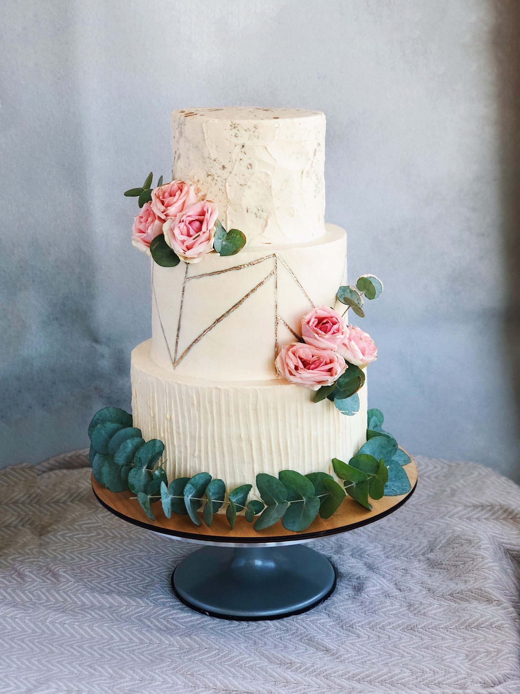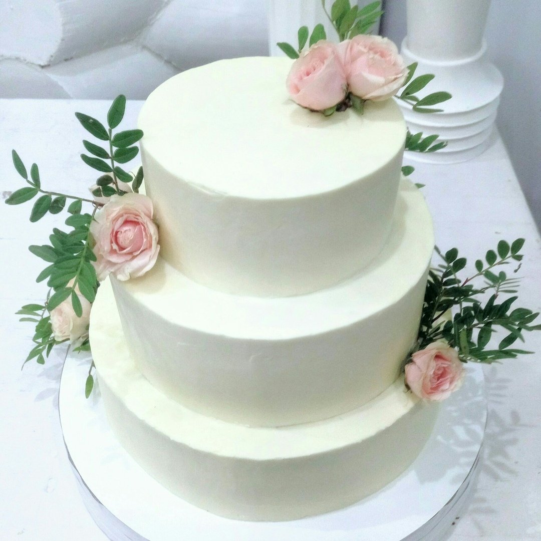 Свадебный торт трехъярусный без мастики