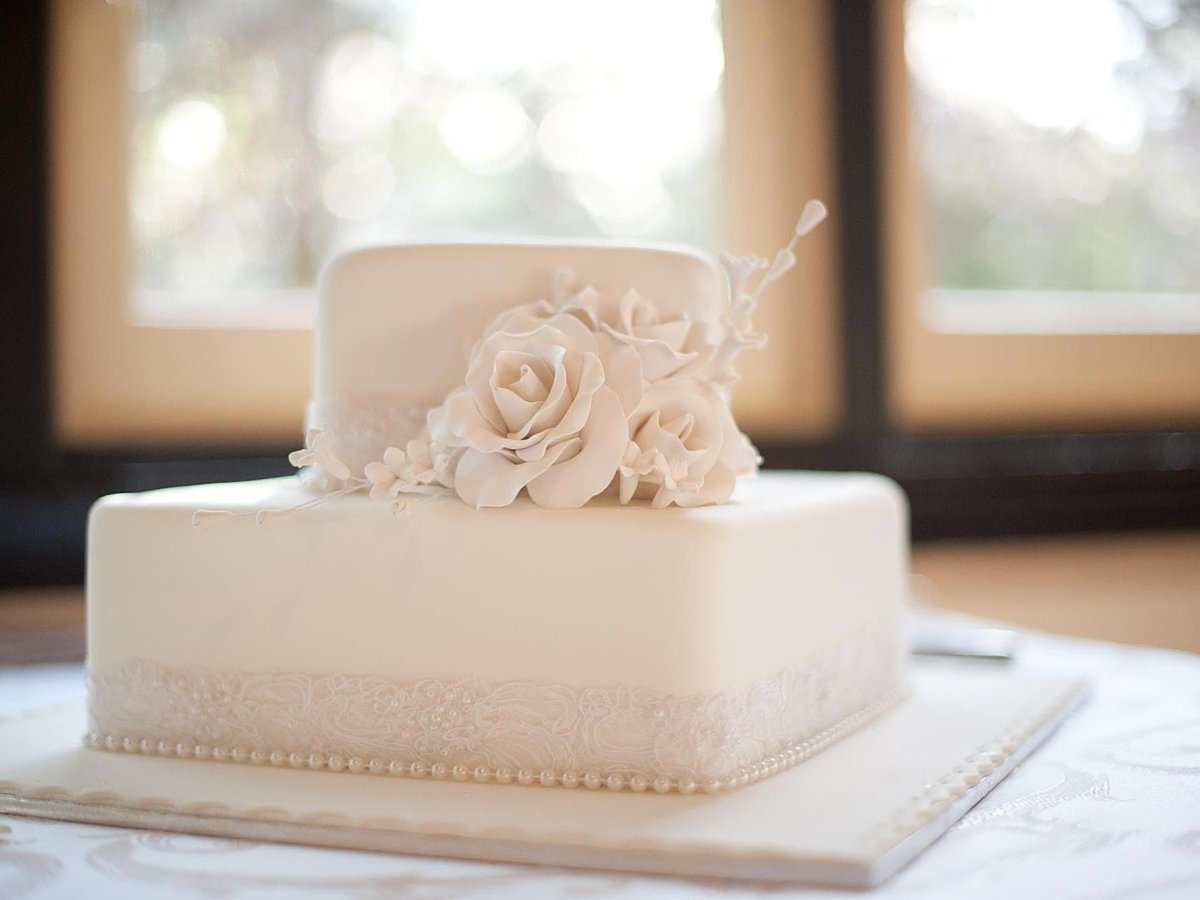 Квадратный свадебный торт в один ярус