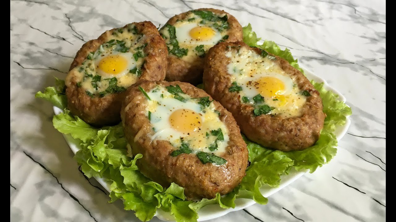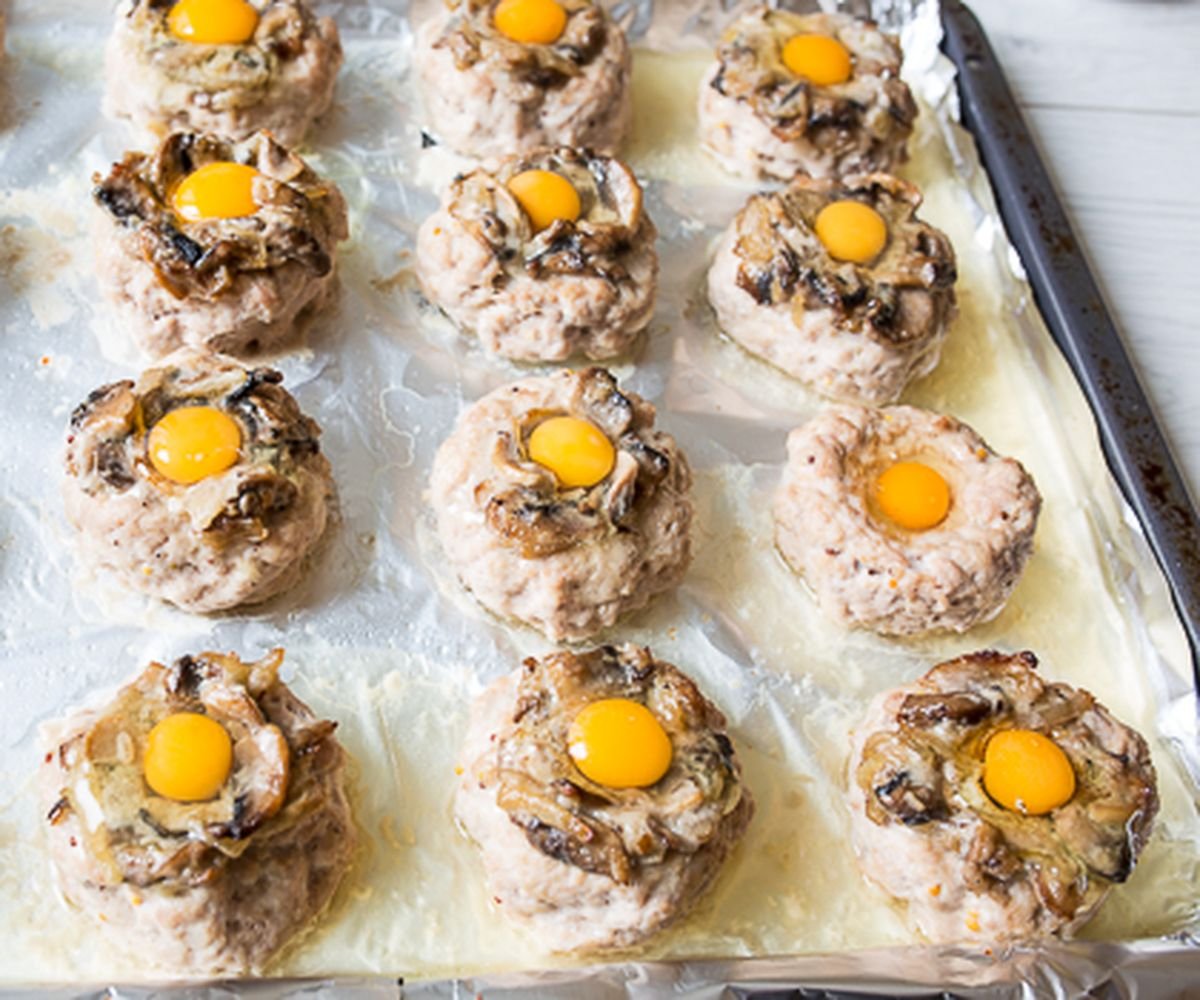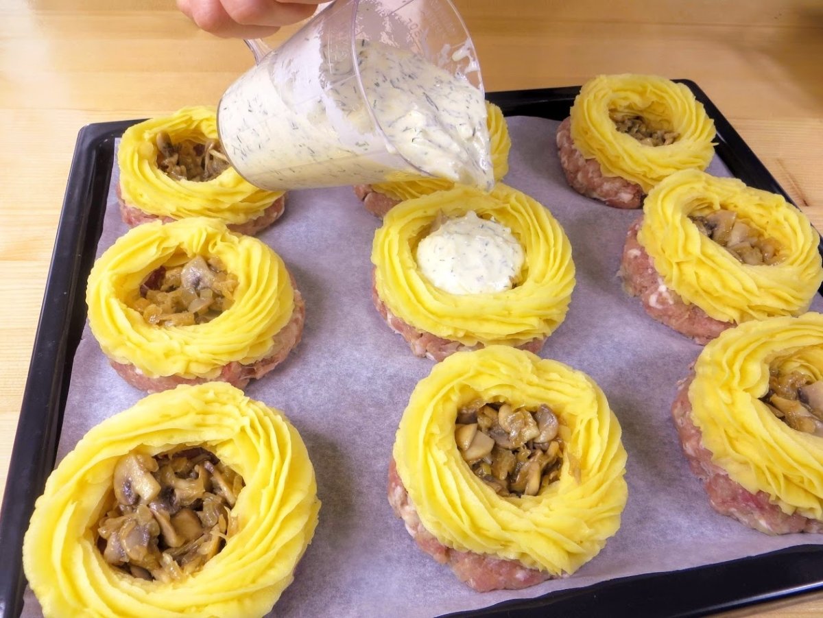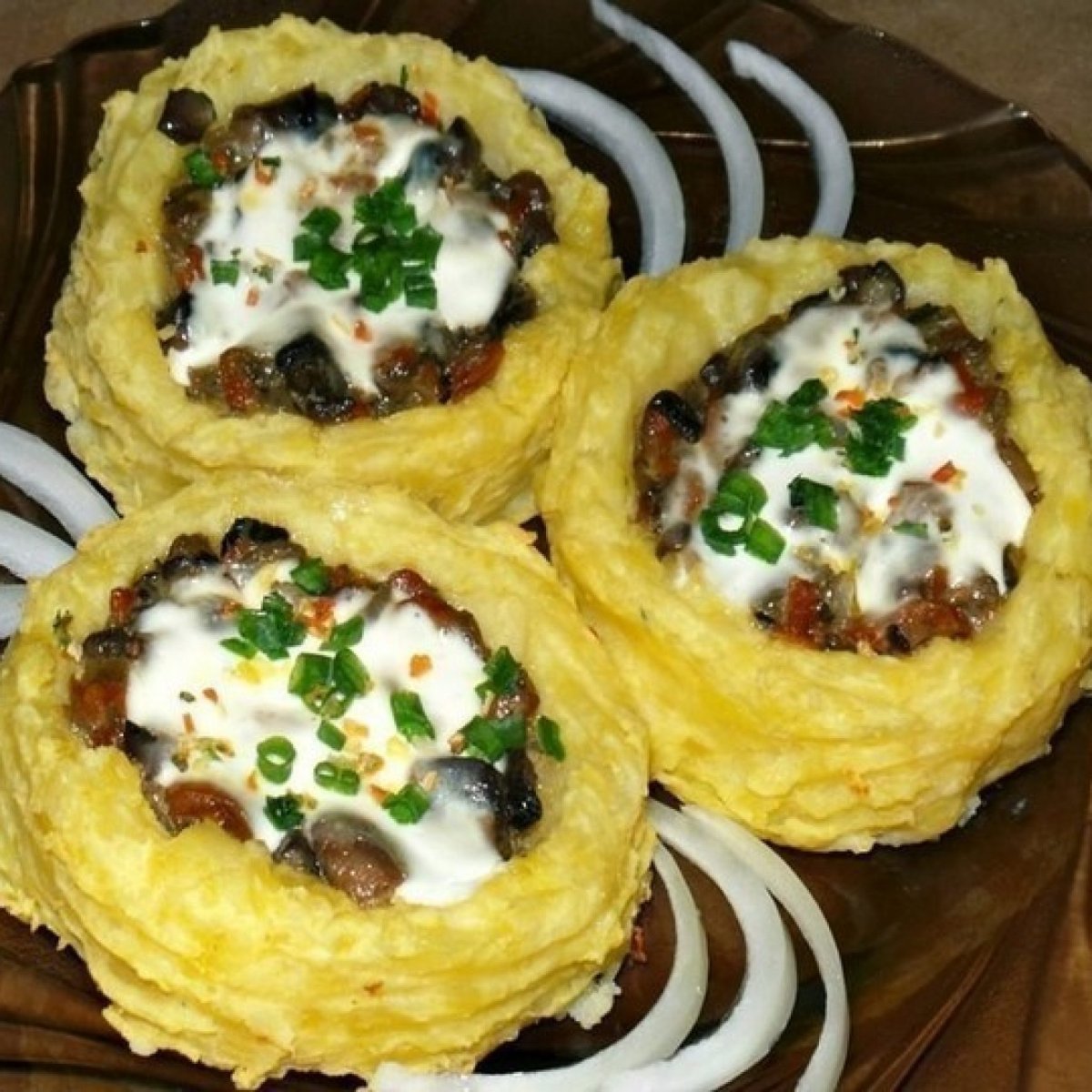 Гнёзда с фаршем в духовке и перепелиными яйцами