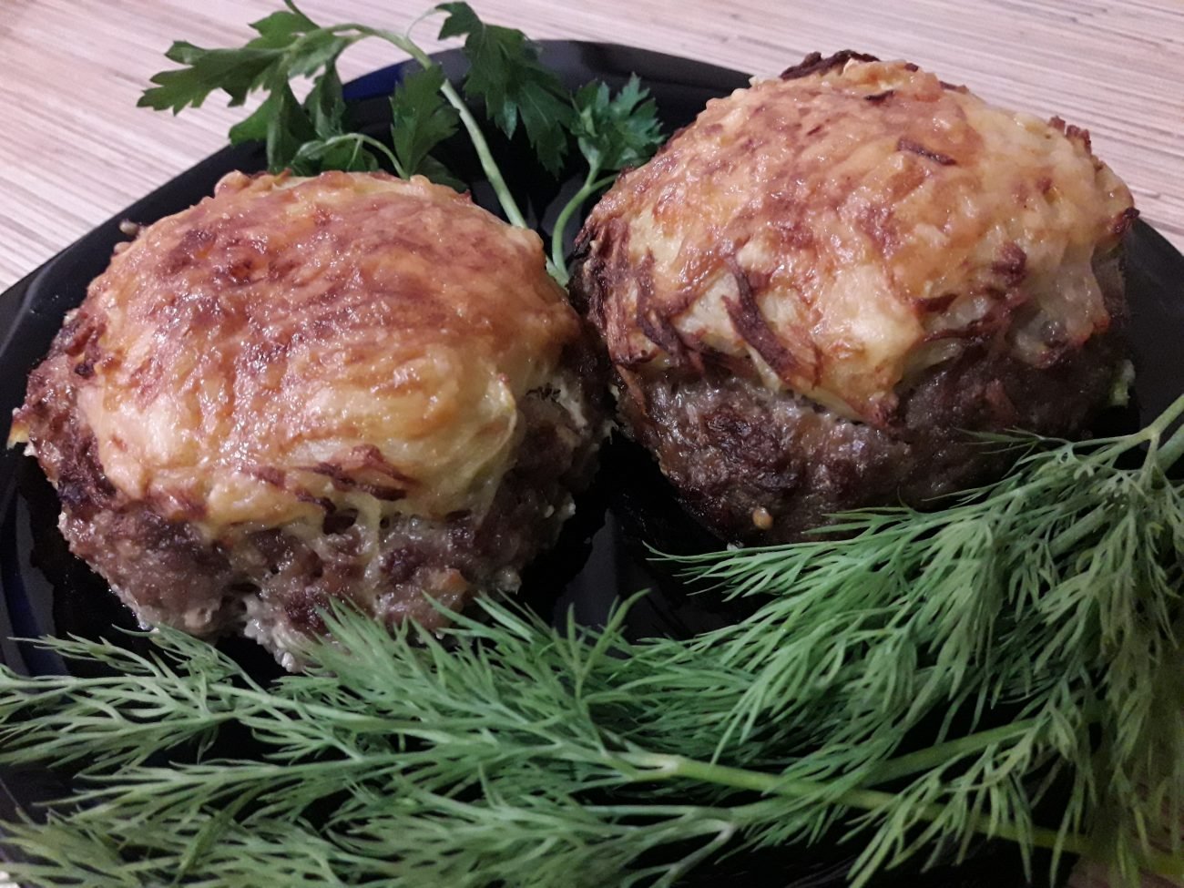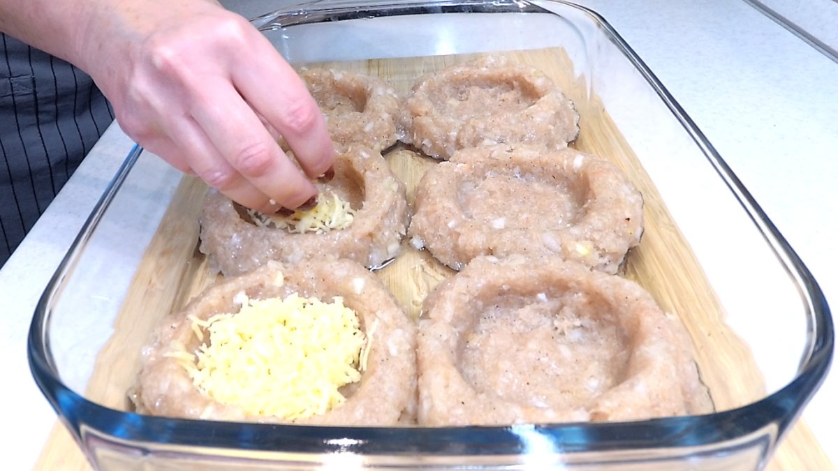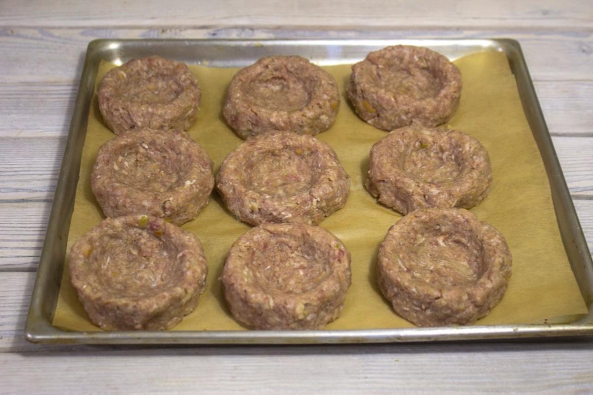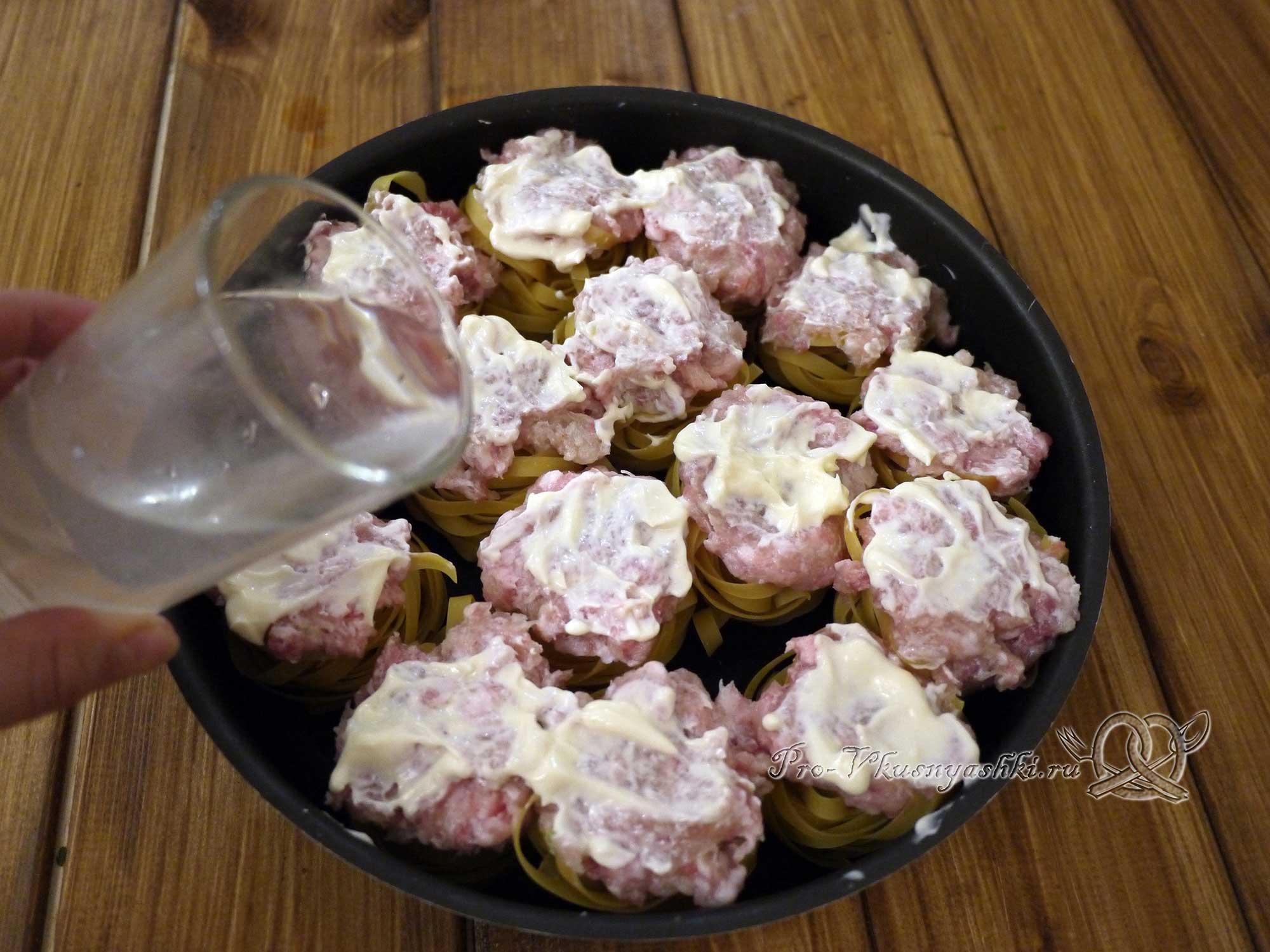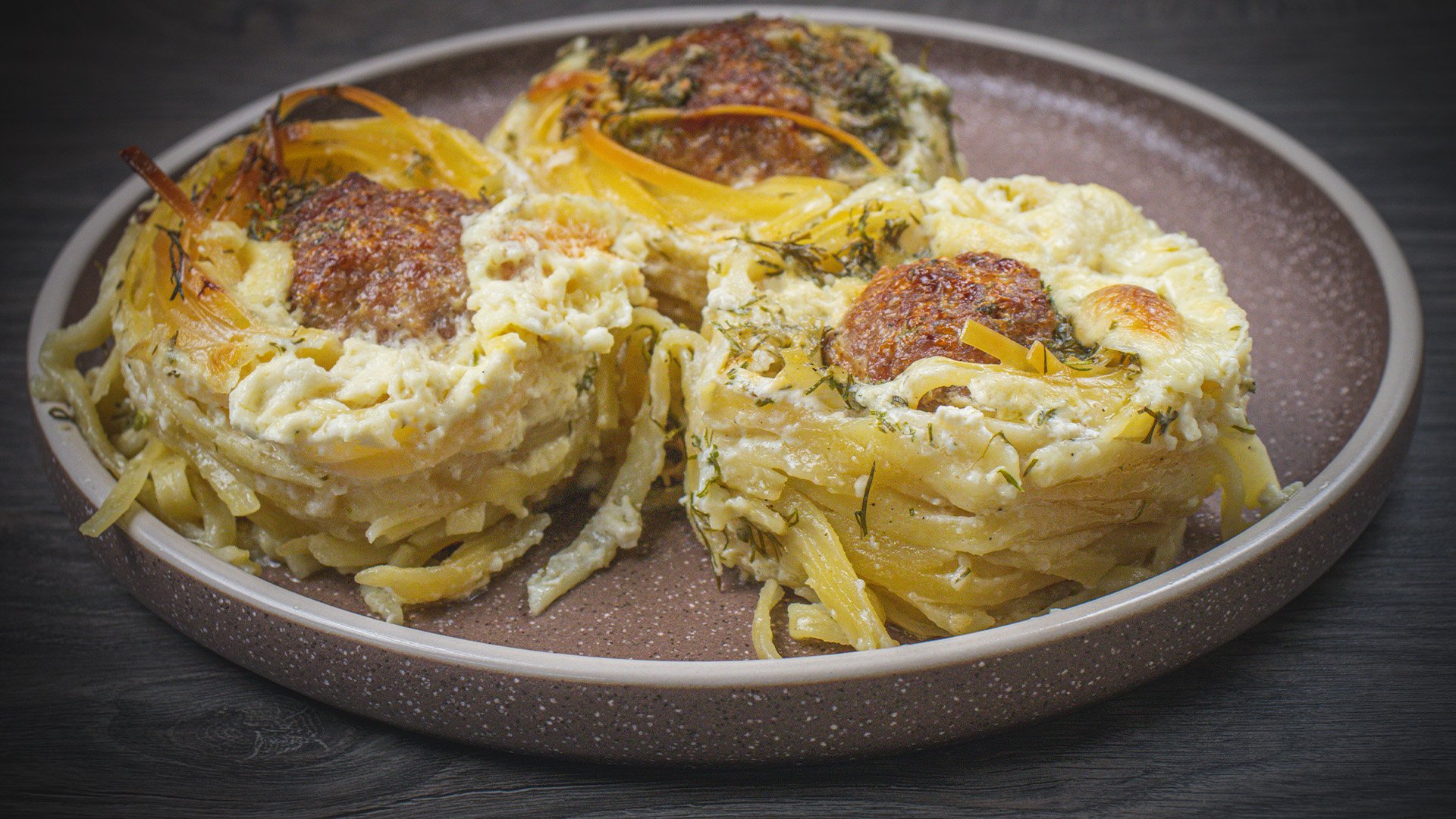 Гнёзда с фаршем в духовке и перепелиными яйцами